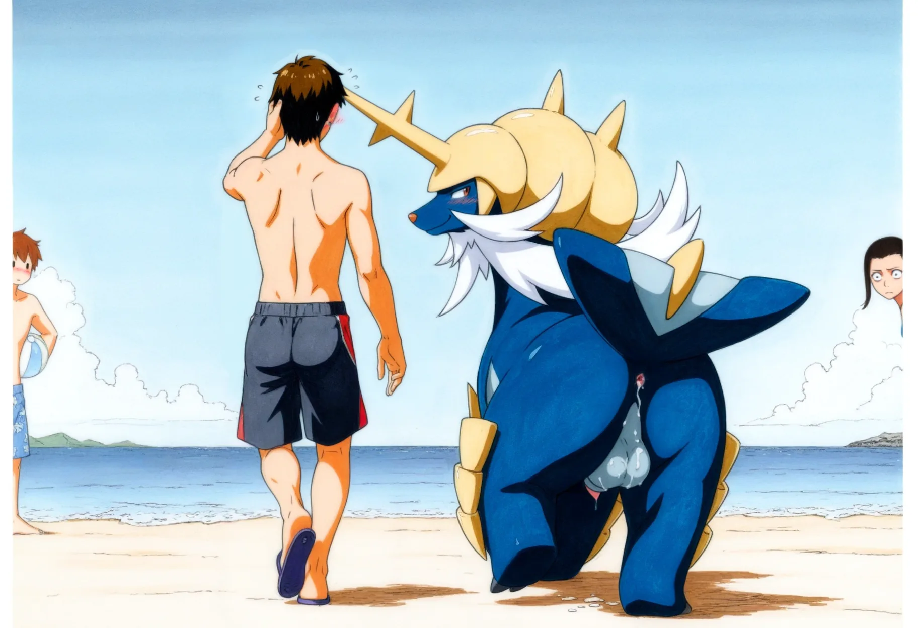 Samurott And Human Duo Interspecies Beach Cum Play | Yiff Party