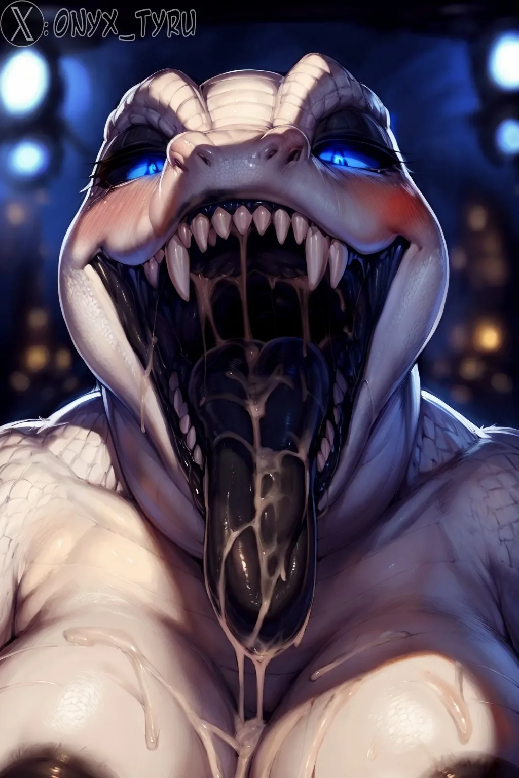 Satiated Croc Gal With Cum Dripping From Mouth And Breasts | Yiff Party