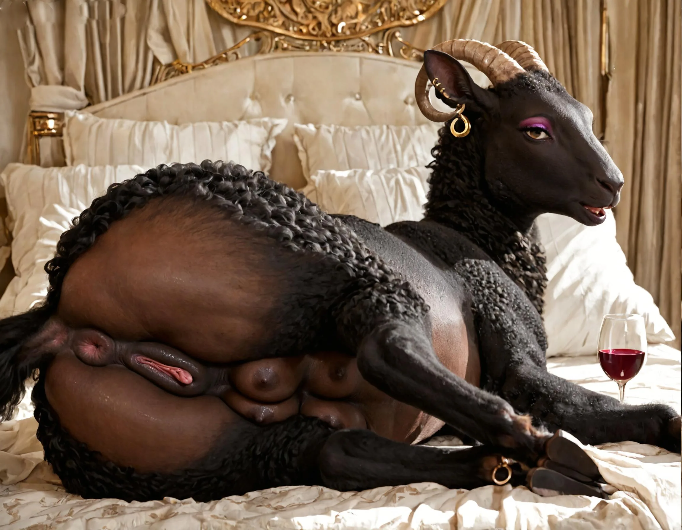 Sheep Beauty Lying On Bed Showing Off Her Pink Eyeshadow And Pierced E | Yiff Party