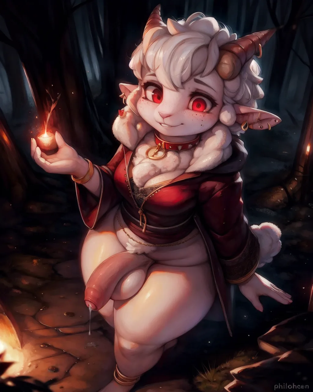 Sheep Bovid Lamb Anthers Leaking Precum Gynomorph Solo Smile Red Eyes | Yiff Party