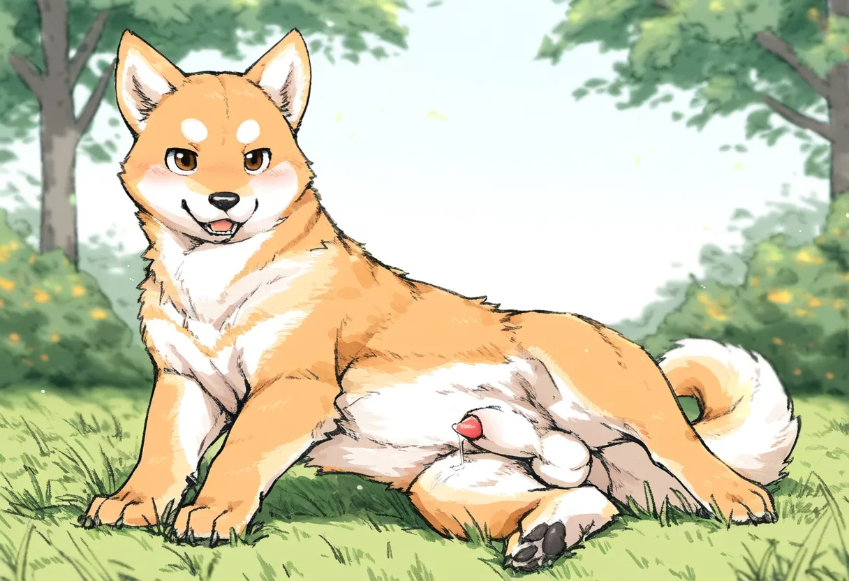 Shiba Inu Solo Lying On Grass With Exposed Genitals And Seductive Pose | Yiff Party