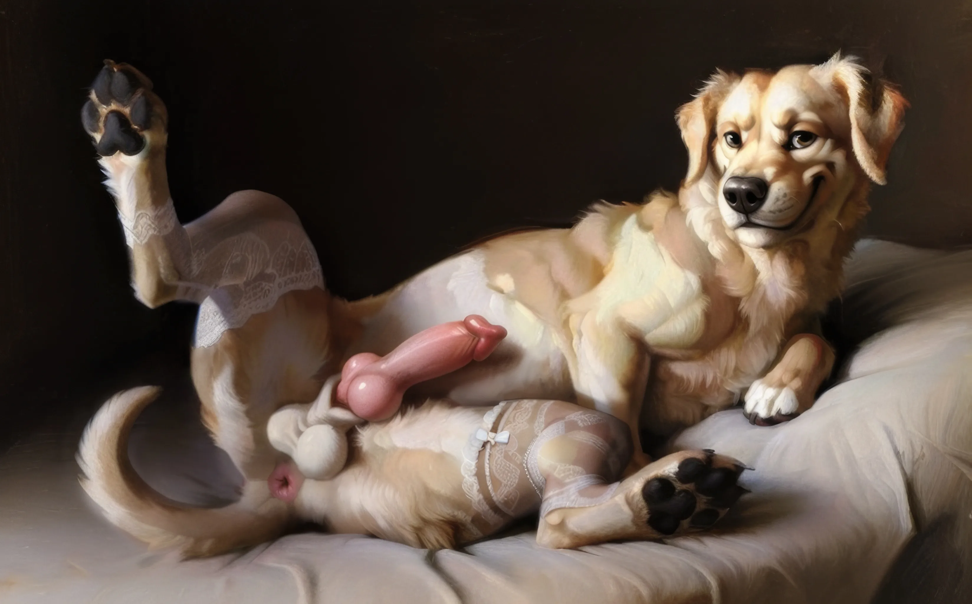 Smirking Canid Crossdresser Presents Erect Knot On Silk Sheets | Yiff Party