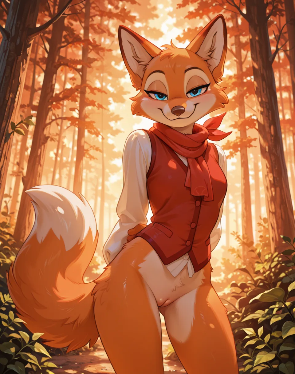 Smirking Red Fox Vixen Teasing With Shirt Open And Bottomless In Fores | Yiff Party