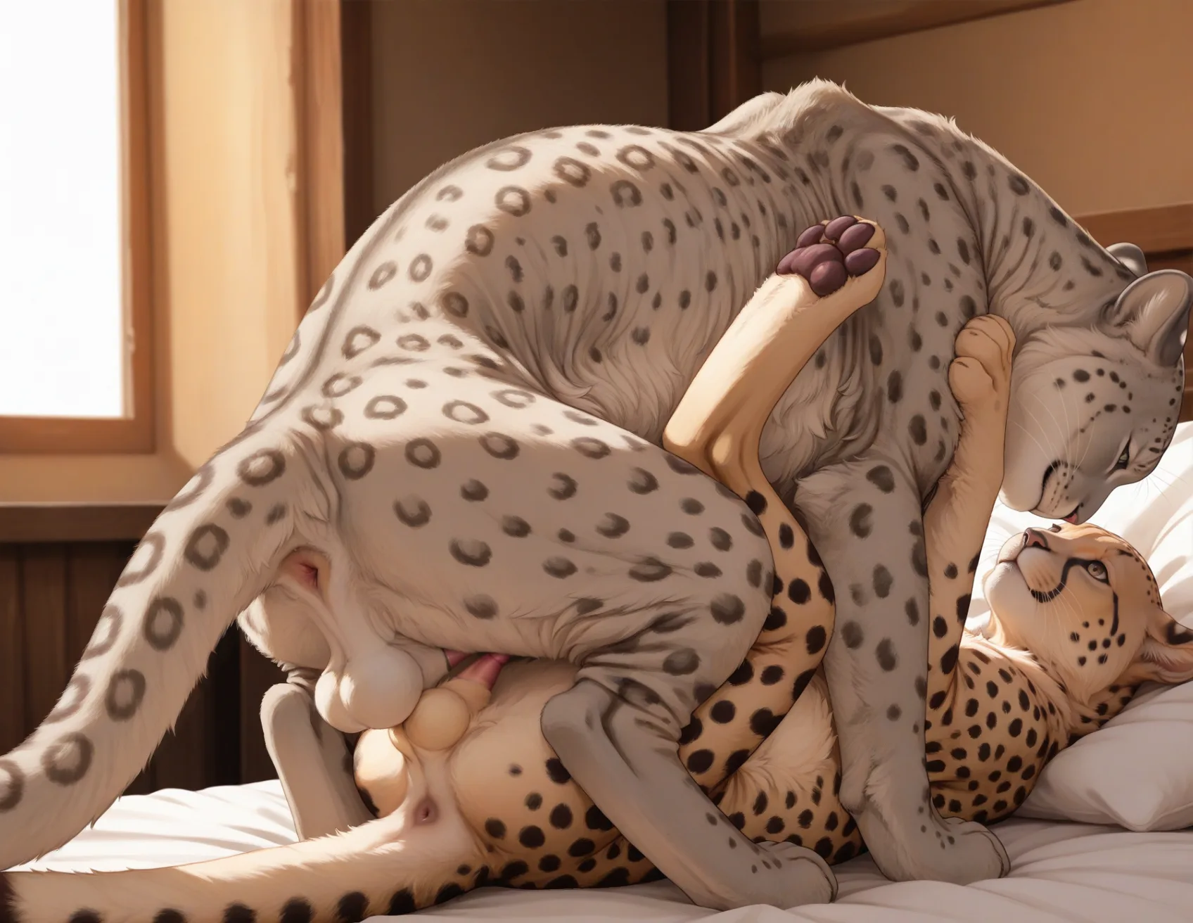 Snow Leopard And Cheetah Frotting On Bed With Erect Penises | Yiff Party