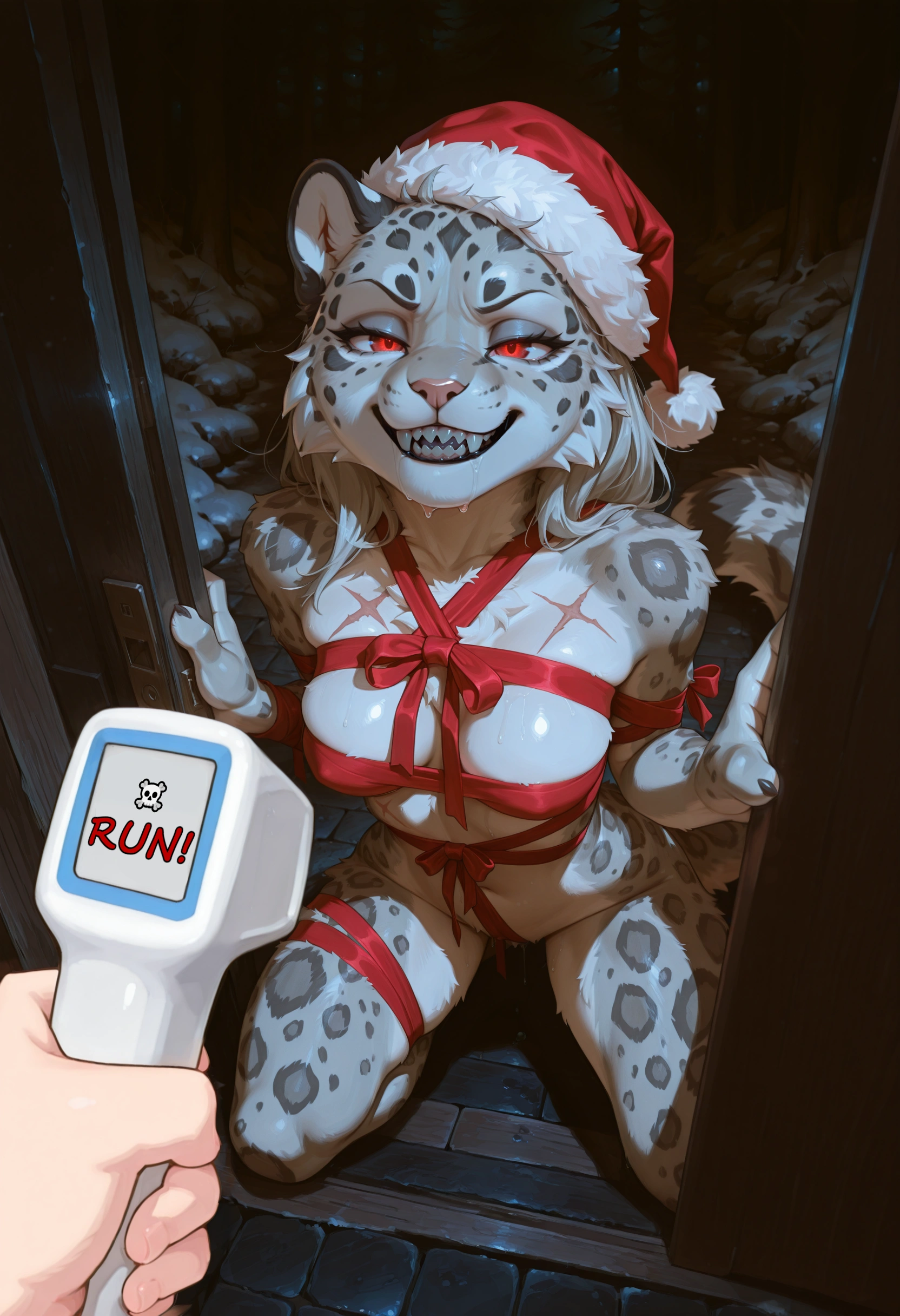 Snow Leopard And Human Duo, Kneeling Nude With Santa Hat, Dripping Sal | Yiff Party