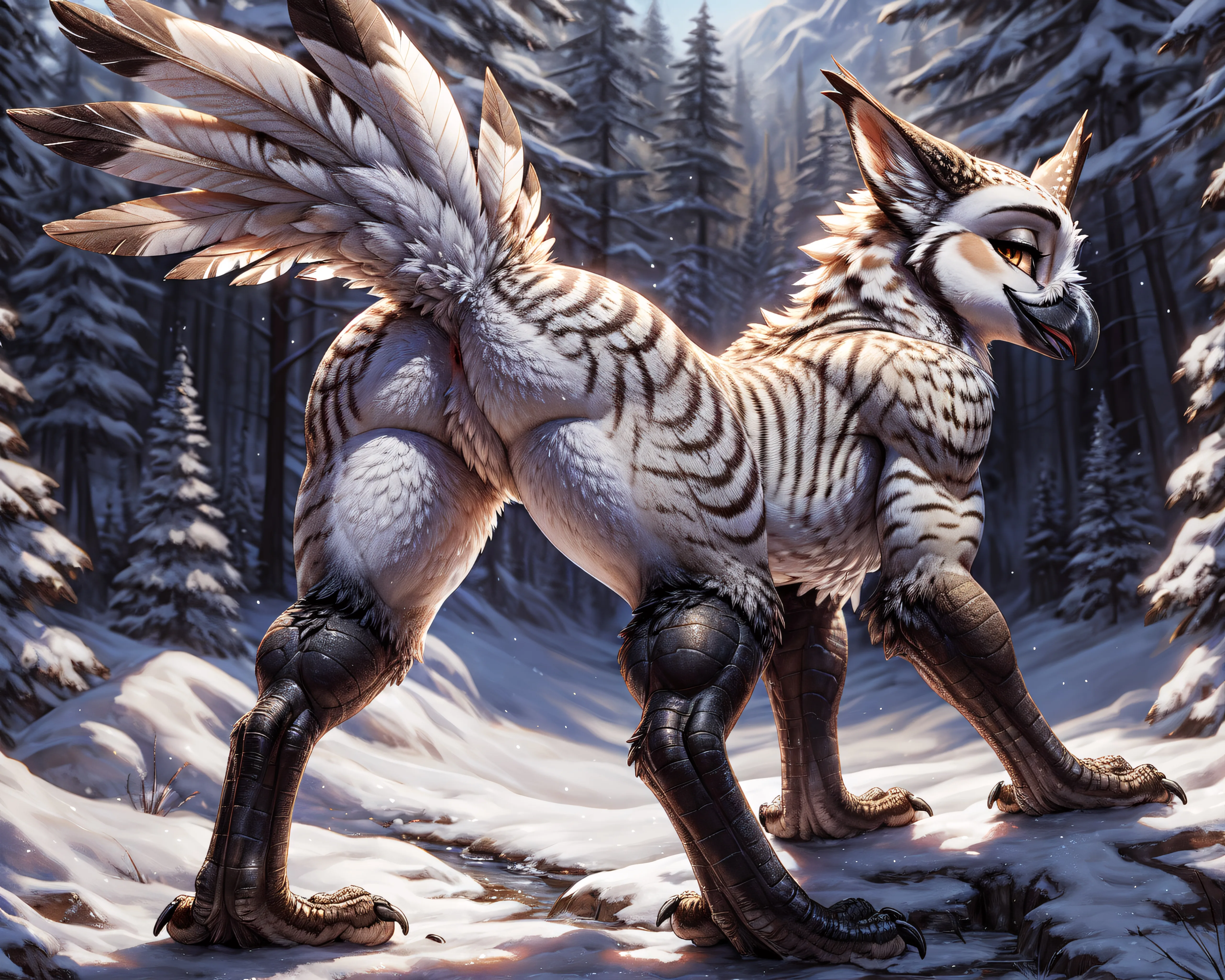 Snowy Gryphon Strutting Wild In Mountain Forest | Yiff Party