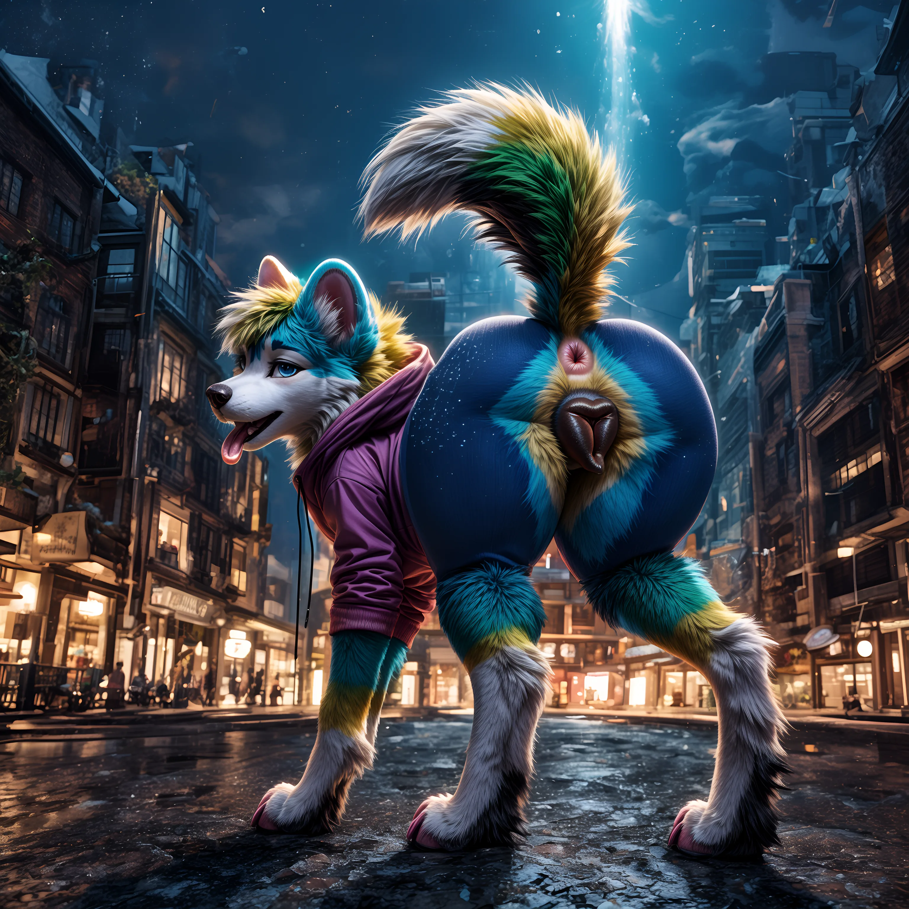 Sparkledog'S Glowing Blue Fur And Hoodie, Presenting Pink Anus And Bla | Yiff Party