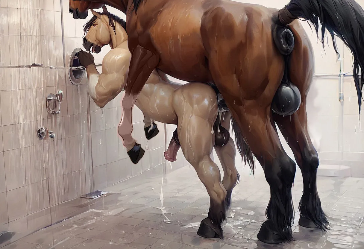 Stallion And Horse Anal Penetration In Wet Shower Room | Yiff Party
