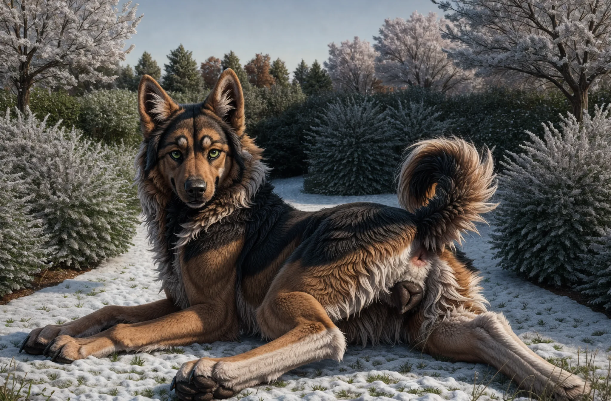 Sultry Black And Tan Canine Beauty Bares All In The Snow | Yiff Party