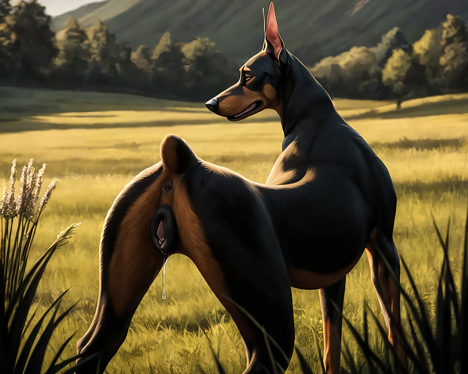 Sultry Black Furred She-Wolf Presenting Dripping Wet Pussy Outdoors | Yiff Party