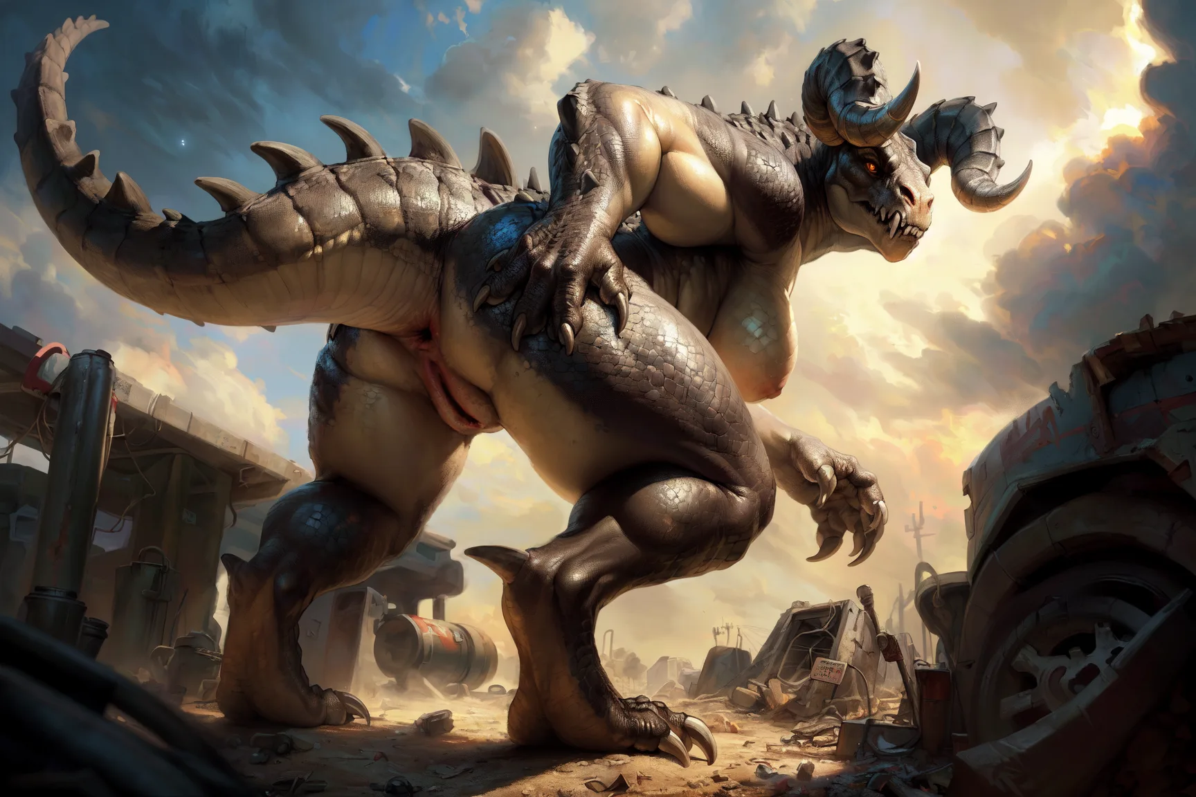 Sultry Deathclaw Scalie Bares Curvy Hindquarters For Viewer | Yiff Party