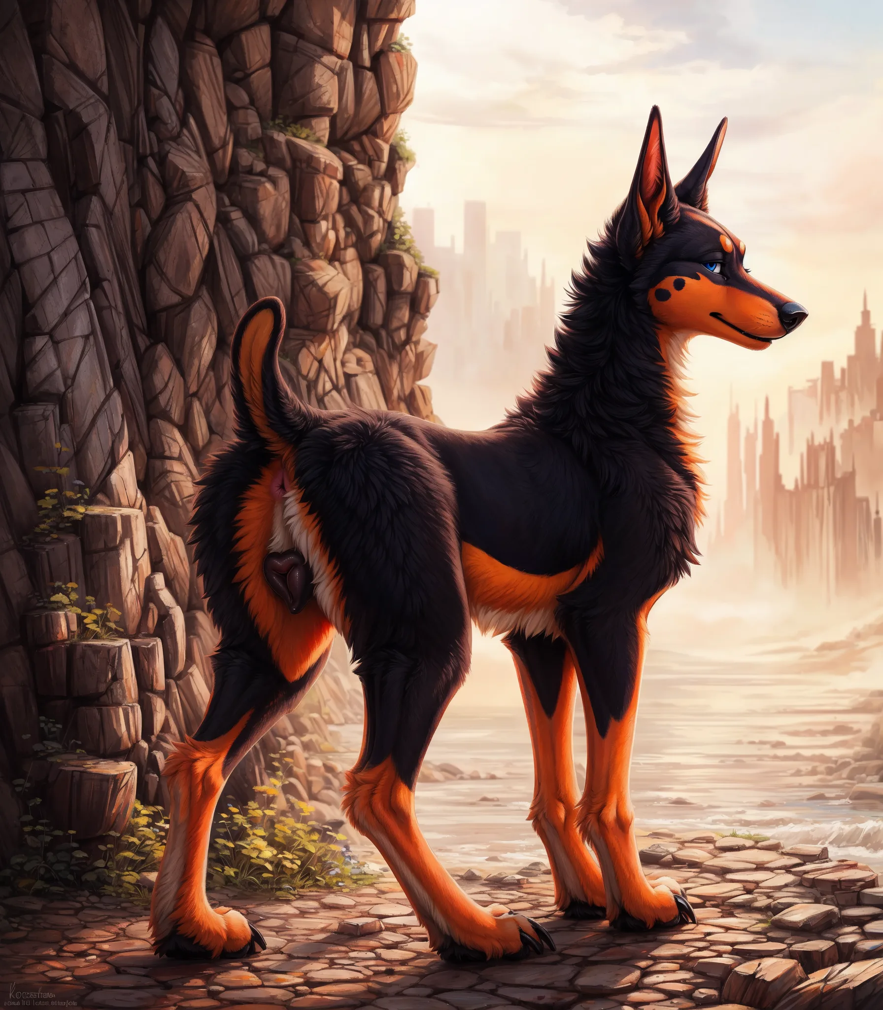 Sultry Dobermann Seductively Displays Her Pink Anus And Black Pussy | Yiff Party