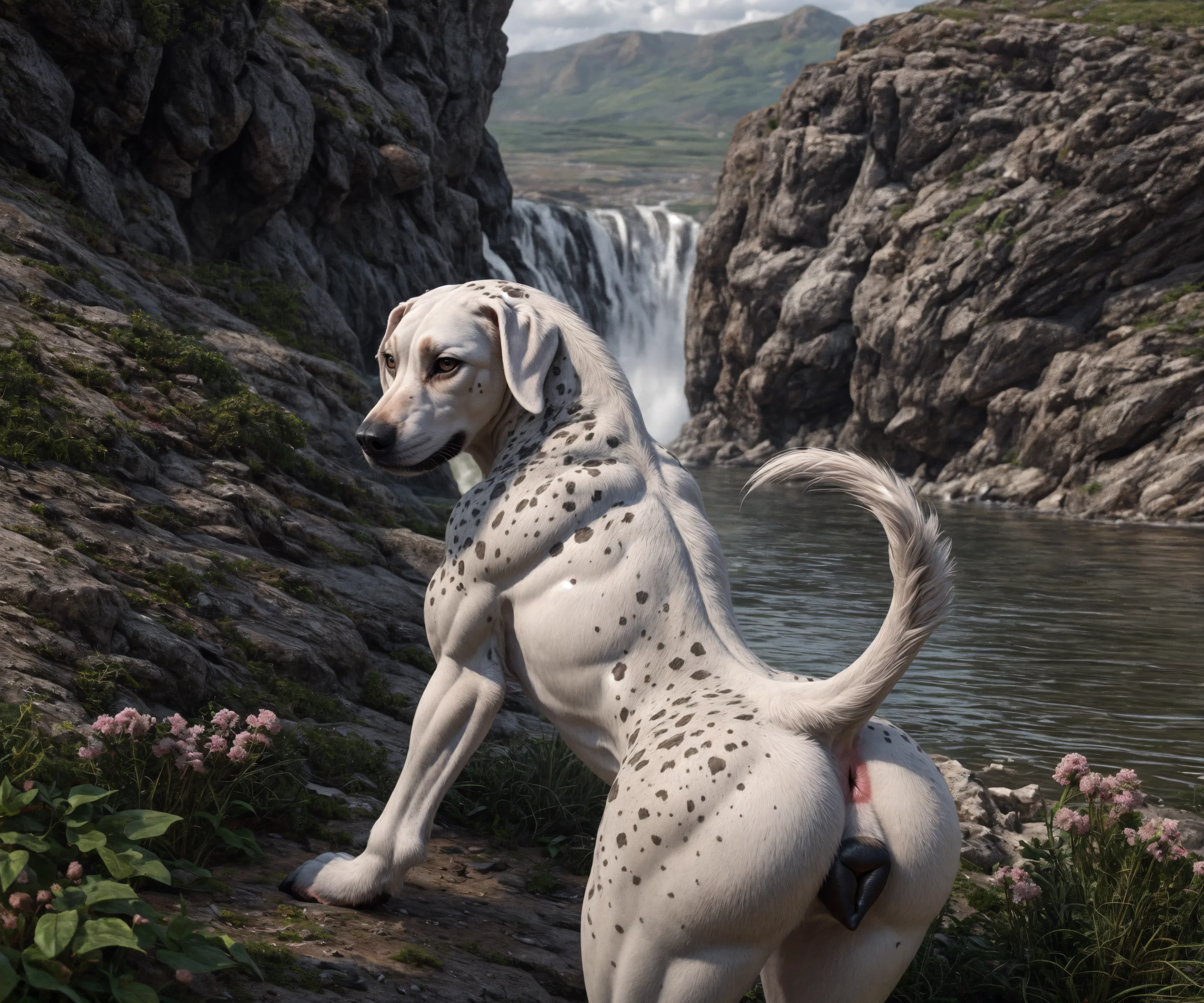 Sultry Spotted Canine Shows Off Her Glistening Pussy And Anus Outdoors | Yiff Party