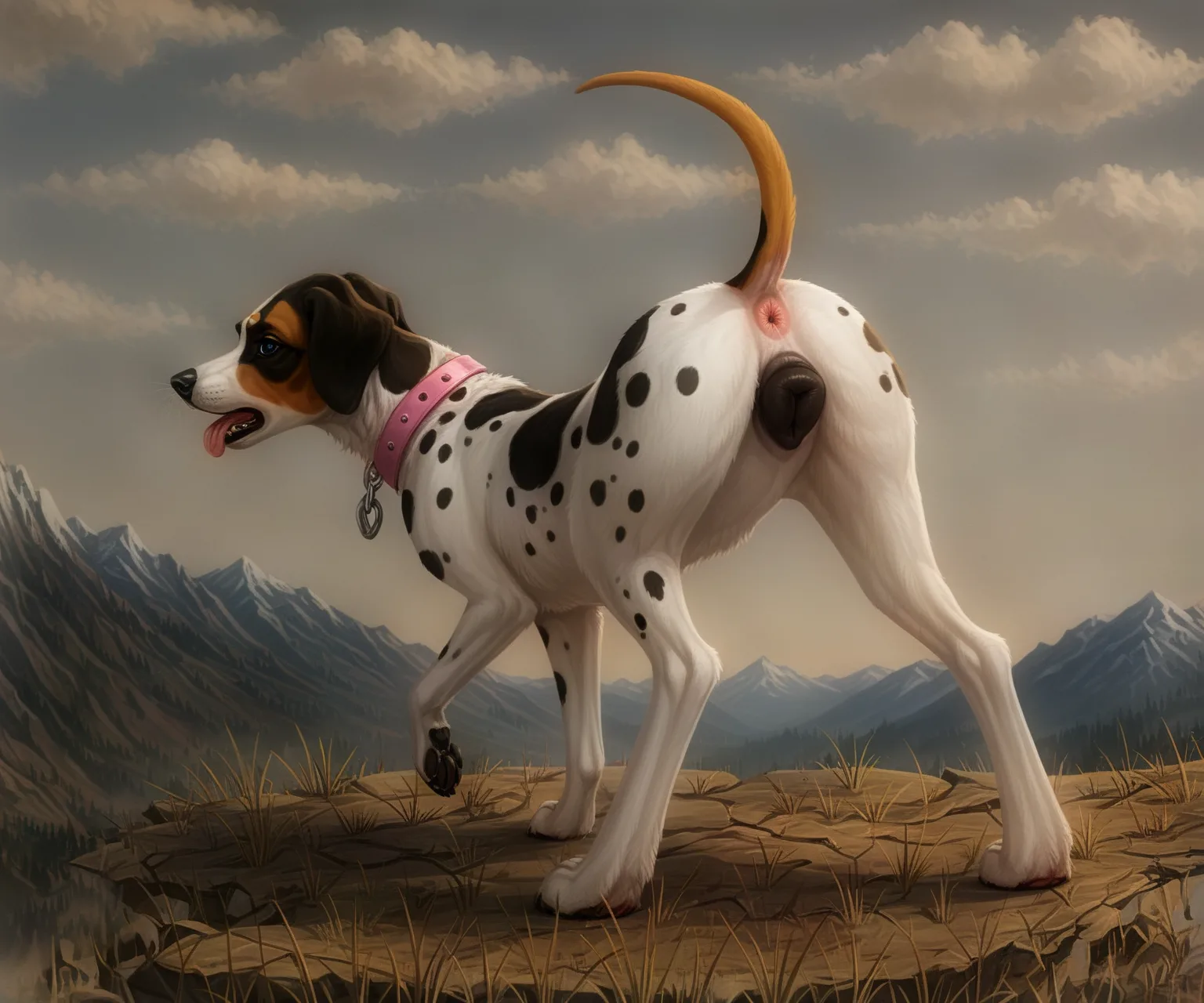 Sultry Spotted Canine Shows Off Her Pink Pussy And Anus Outdoors | Yiff Party