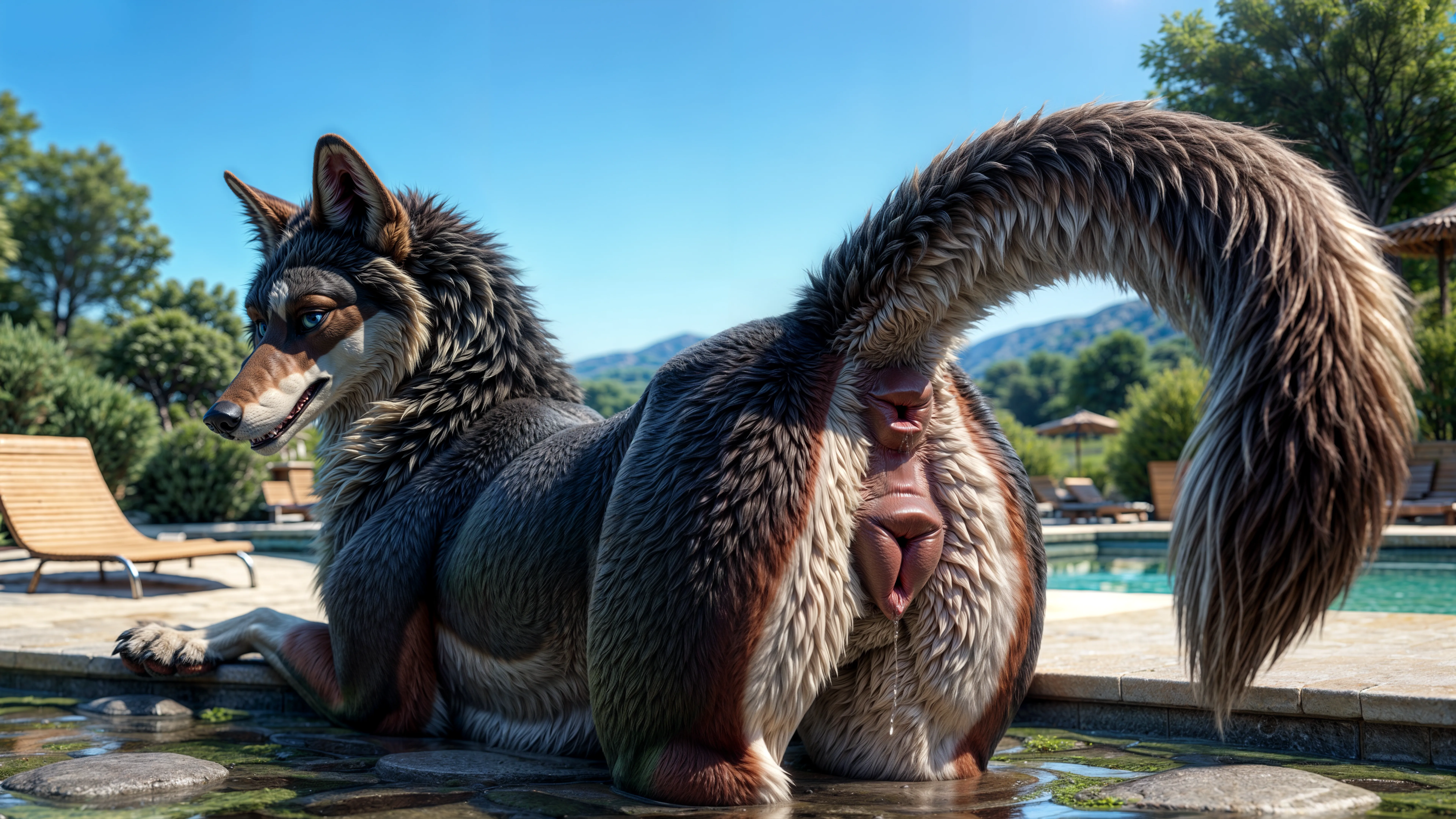 Sultry Wolf Vixen Shows Off Wet Pussy By Sunny Pool | Yiff Party
