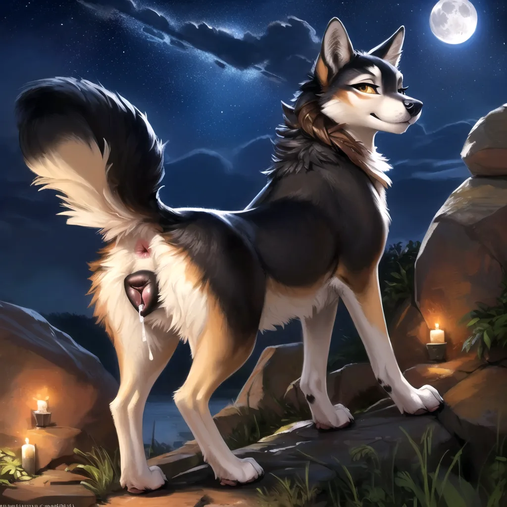 Sultry Wolfess Exposes Plump Vulva Under Moonlight | Yiff Party