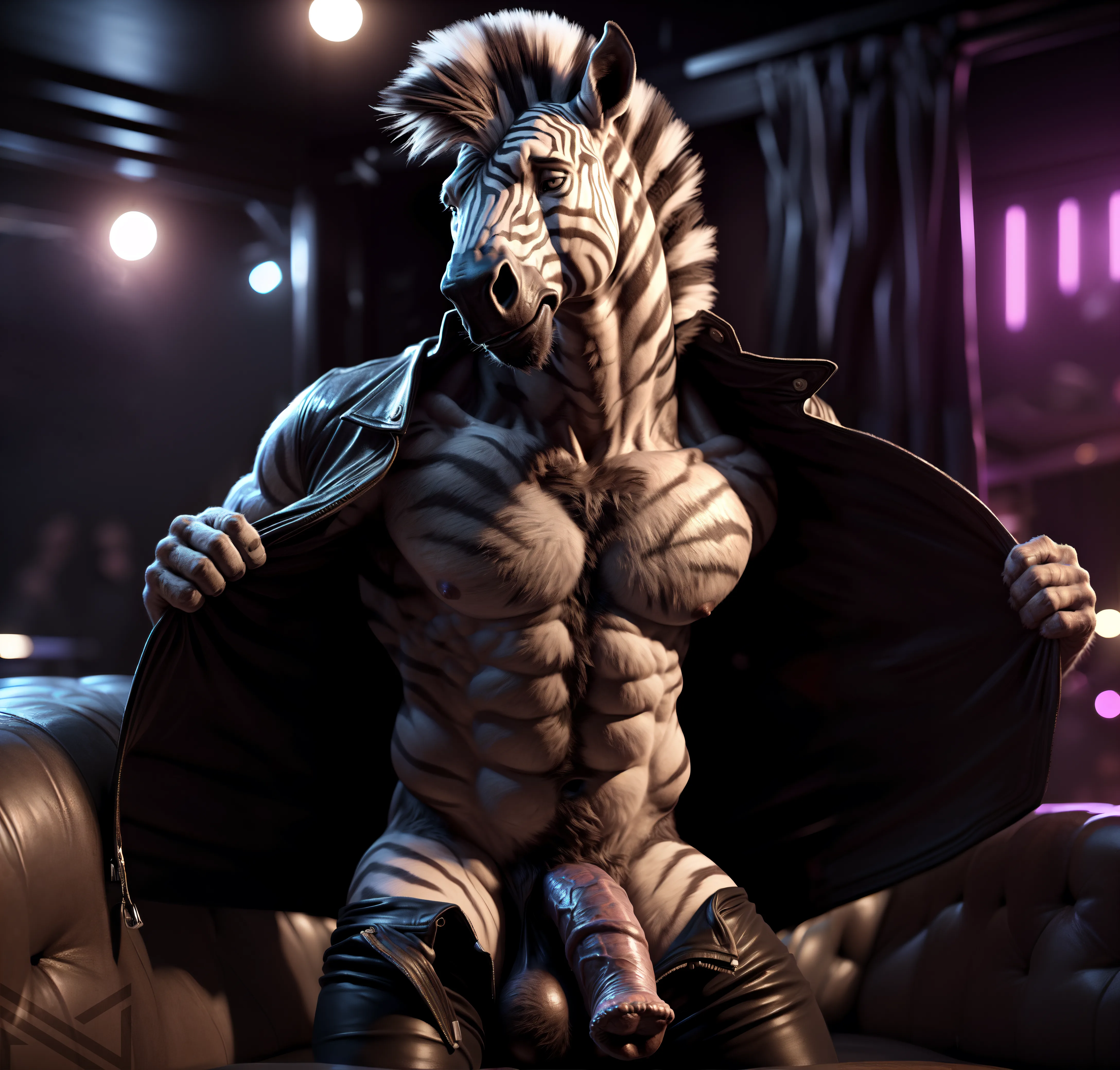 Sultry Zebra Strips Leather Jacket And Pants, Exposing Big Equine Cock | Yiff Party