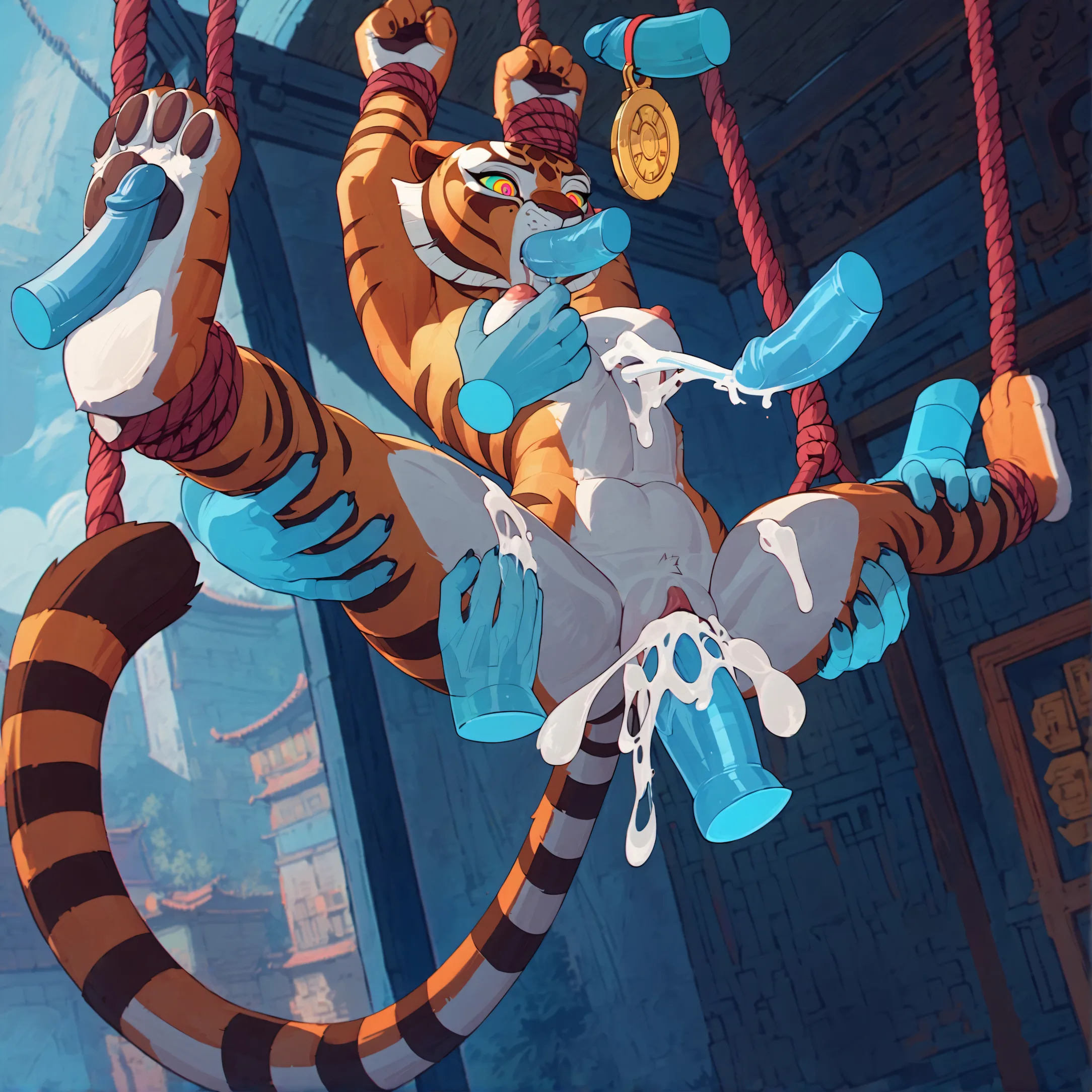 Suspended Tigress Oral And Vaginal Penetration By Muscular Anthro Pant | Yiff Party