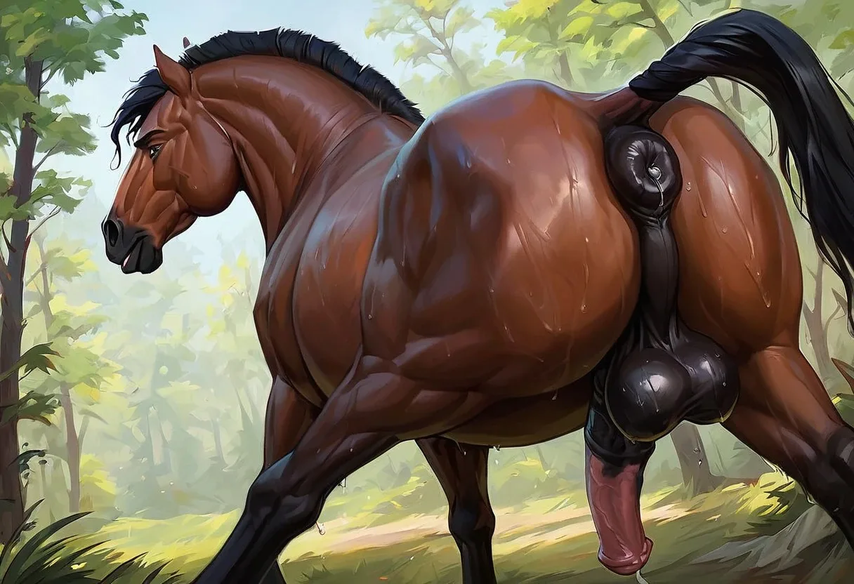 Sweaty Equine Presenting Spread Legs And Raised Tail In Forest | Yiff Party