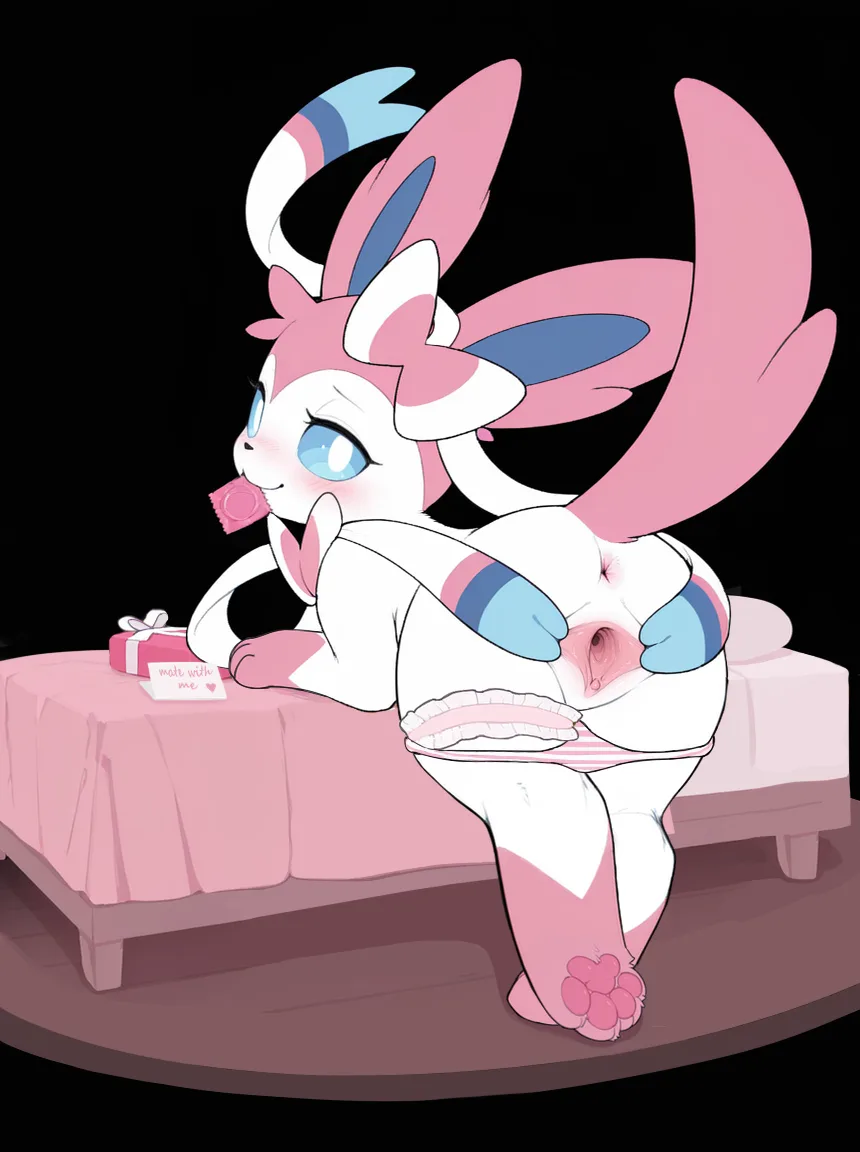 Sylveon Spreading Pussy In Striped Panties On Bed Inviting Sex With Co | Yiff Party