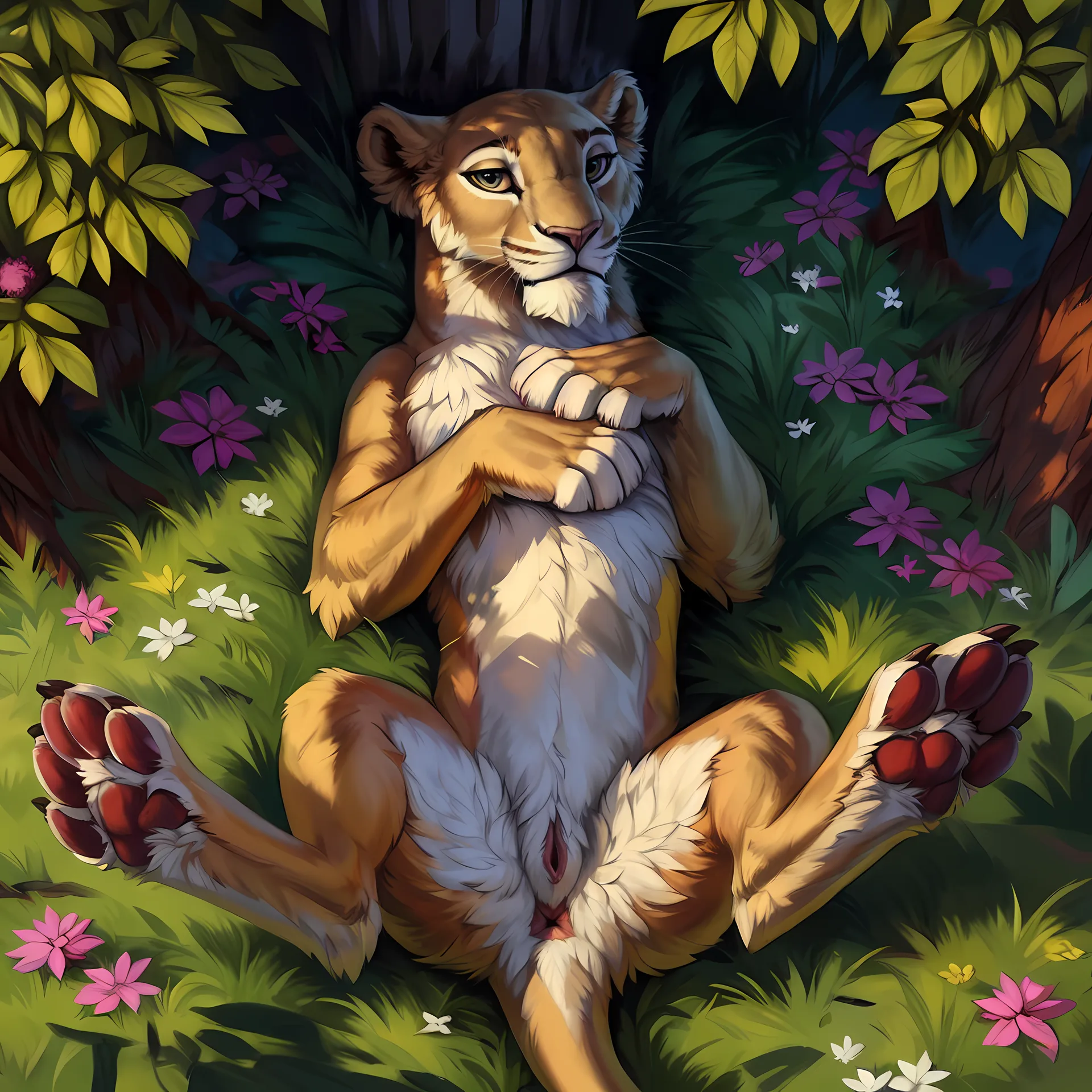 Tan Lioness Presenting Pussy On Grassy Field | Yiff Party