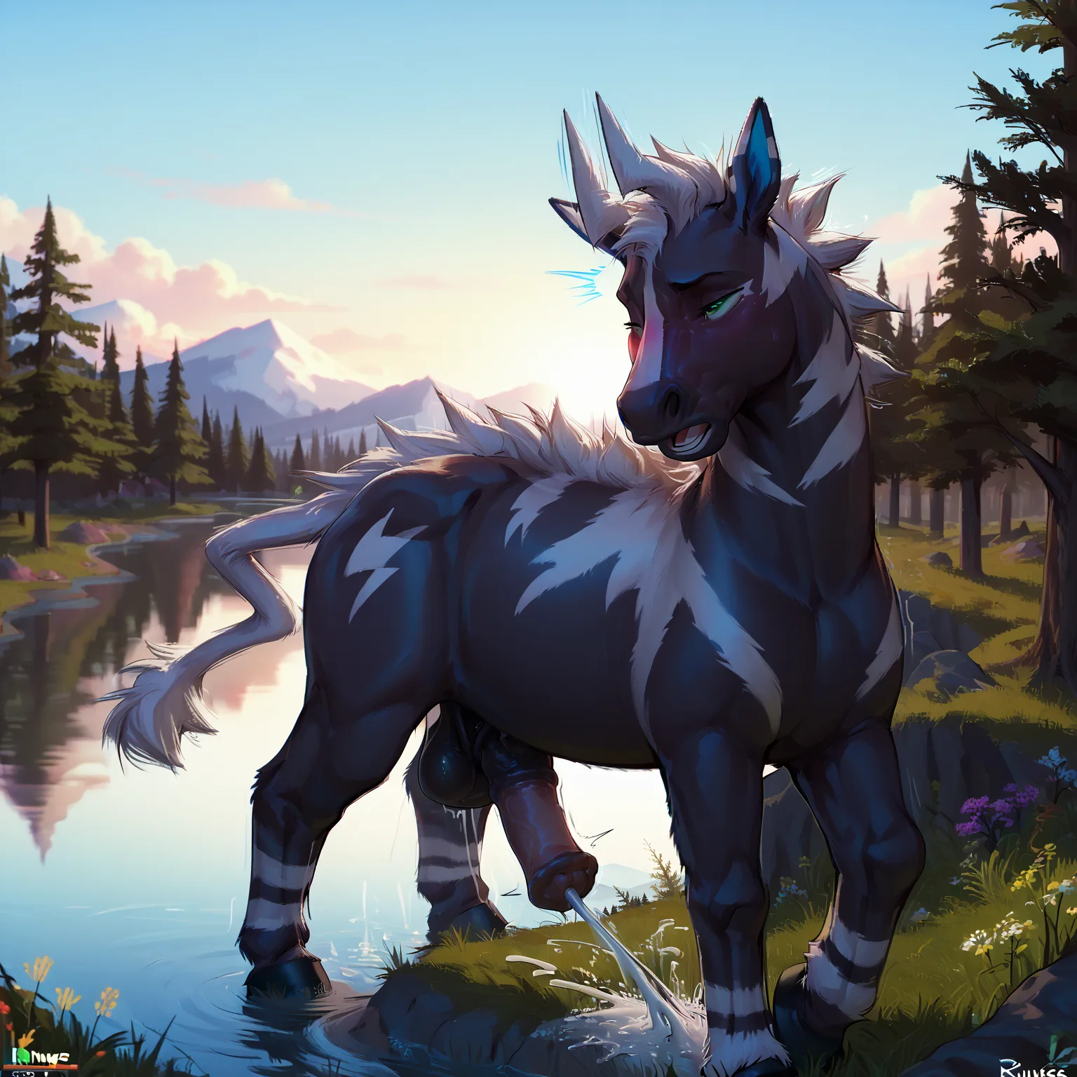 Throbbing Zebstrika Equine Penis Cumming On Grass By River Mountains | Yiff Party