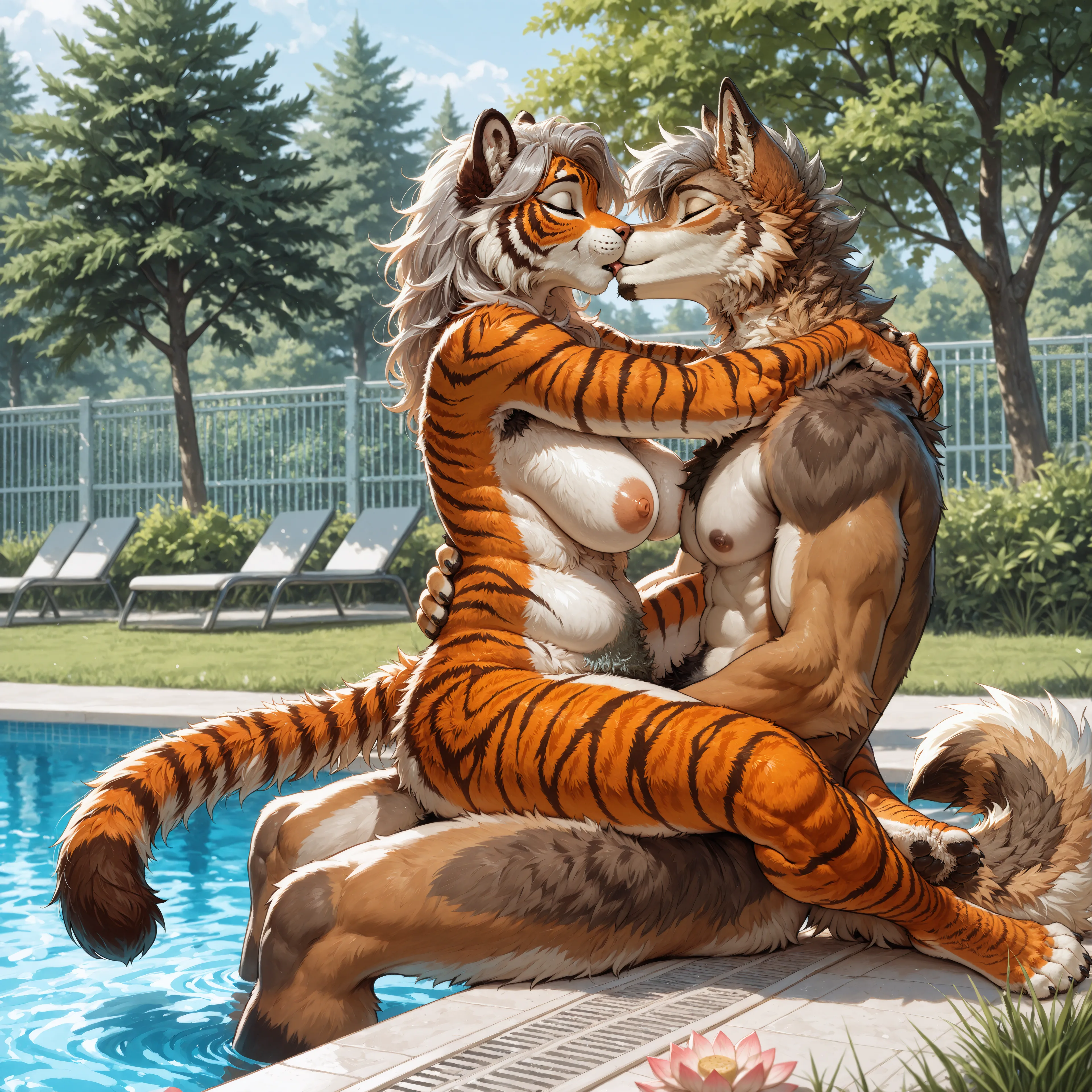 Tiger And Coyote Fucking Passionately By The Poolside | Yiff Party