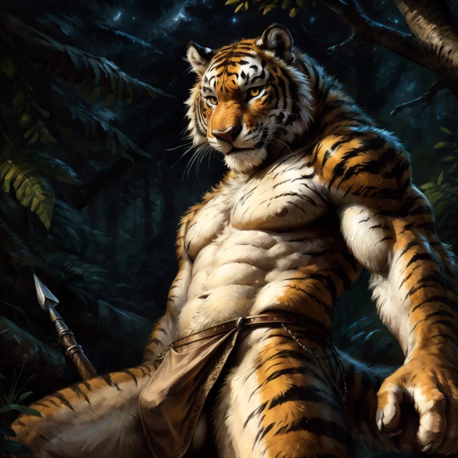 Tiger Anthro Male Hunting Solo In Forest With Striped Body And Loinclo | Yiff Party