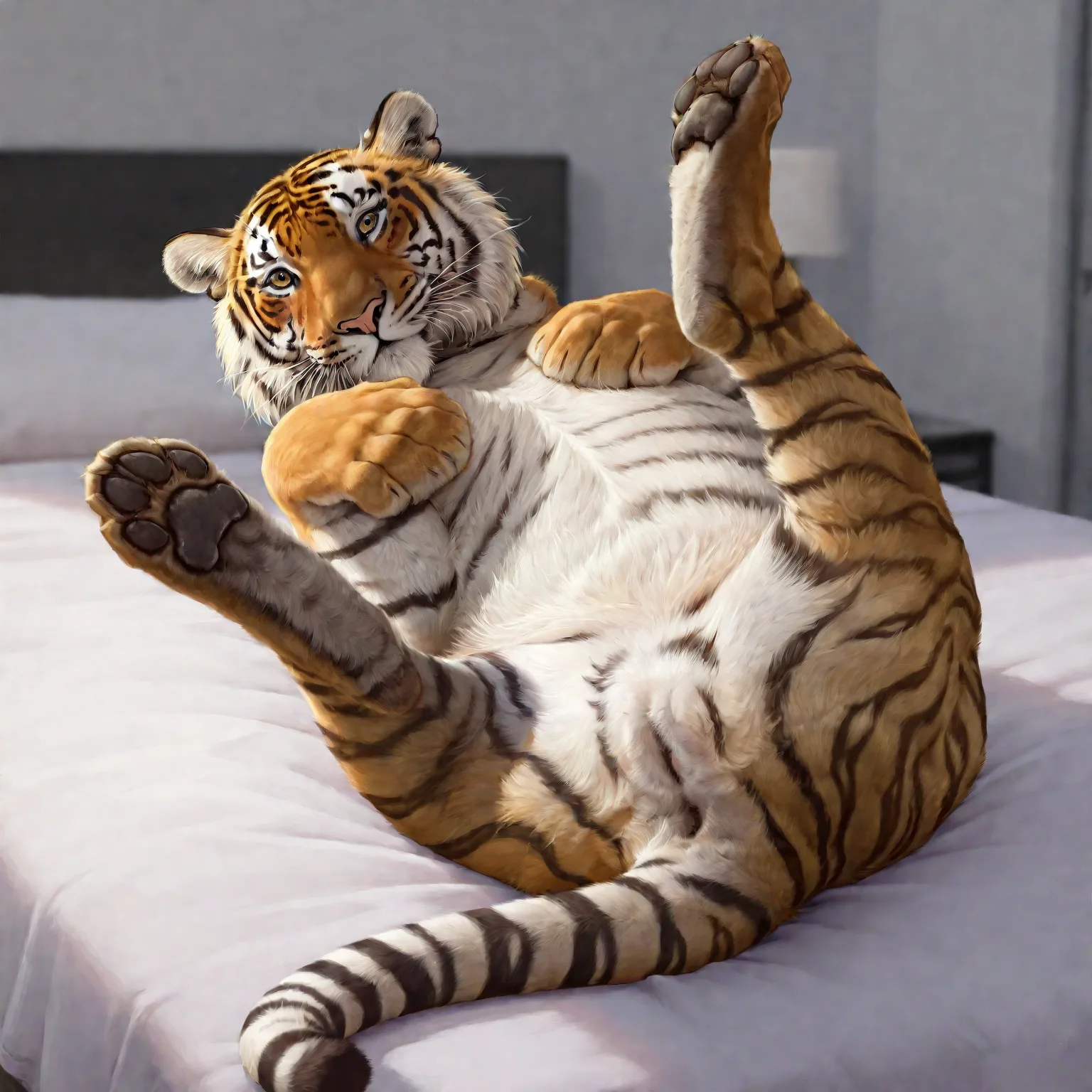 Tiger With Spread Legs Exposing Pussy And Asshole On Bed | Yiff Party