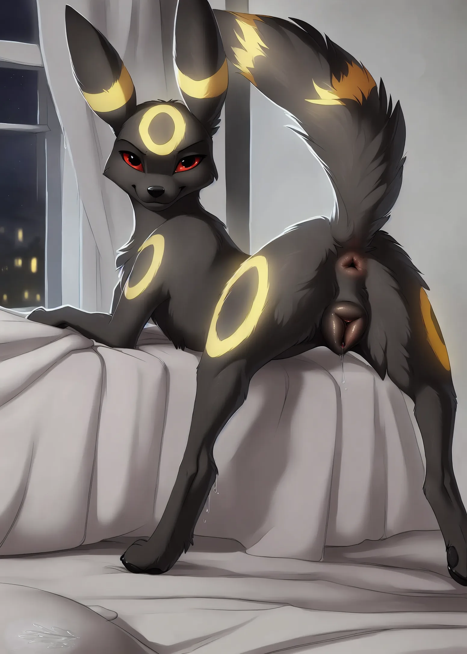 Umbreon Presenting Pink Pussy And Ass On Bed With Windowsill View | Yiff Party