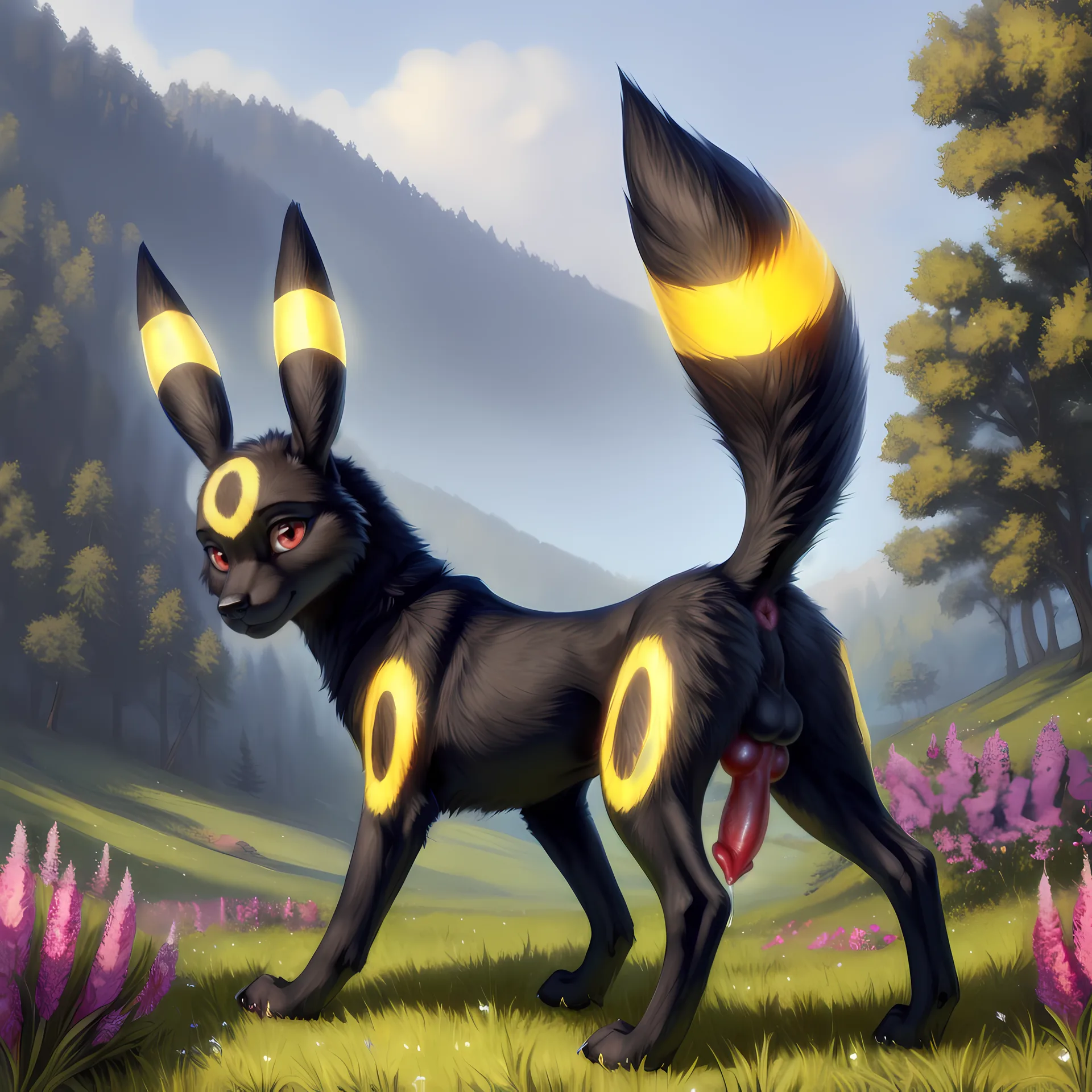 Umbreon Shows Off Erect Knotting Penis In Alpine Meadow | Yiff Party