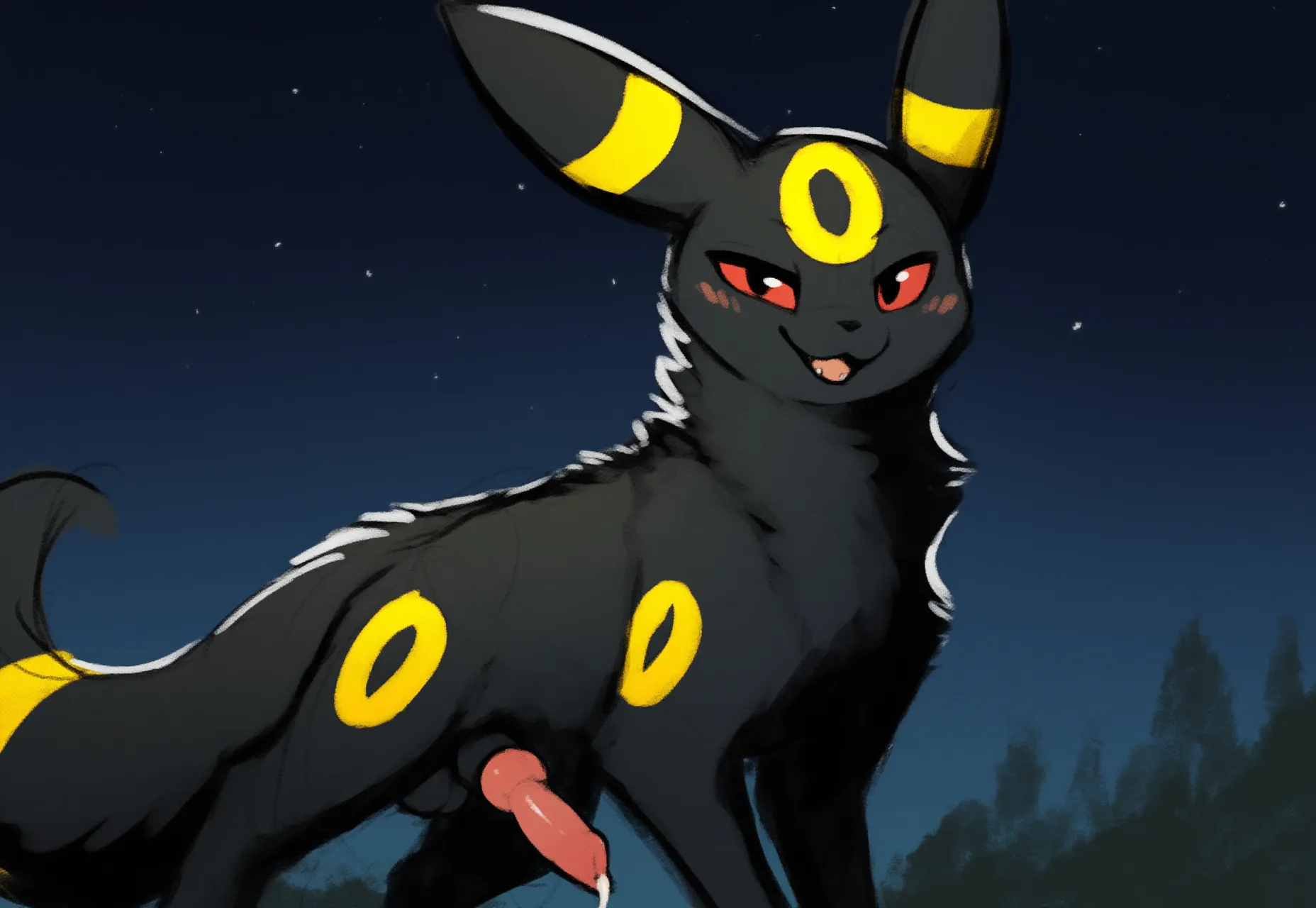 Umbreon Solo Feral Outside All Fours With Erect Canine Penis And Black | Yiff Party