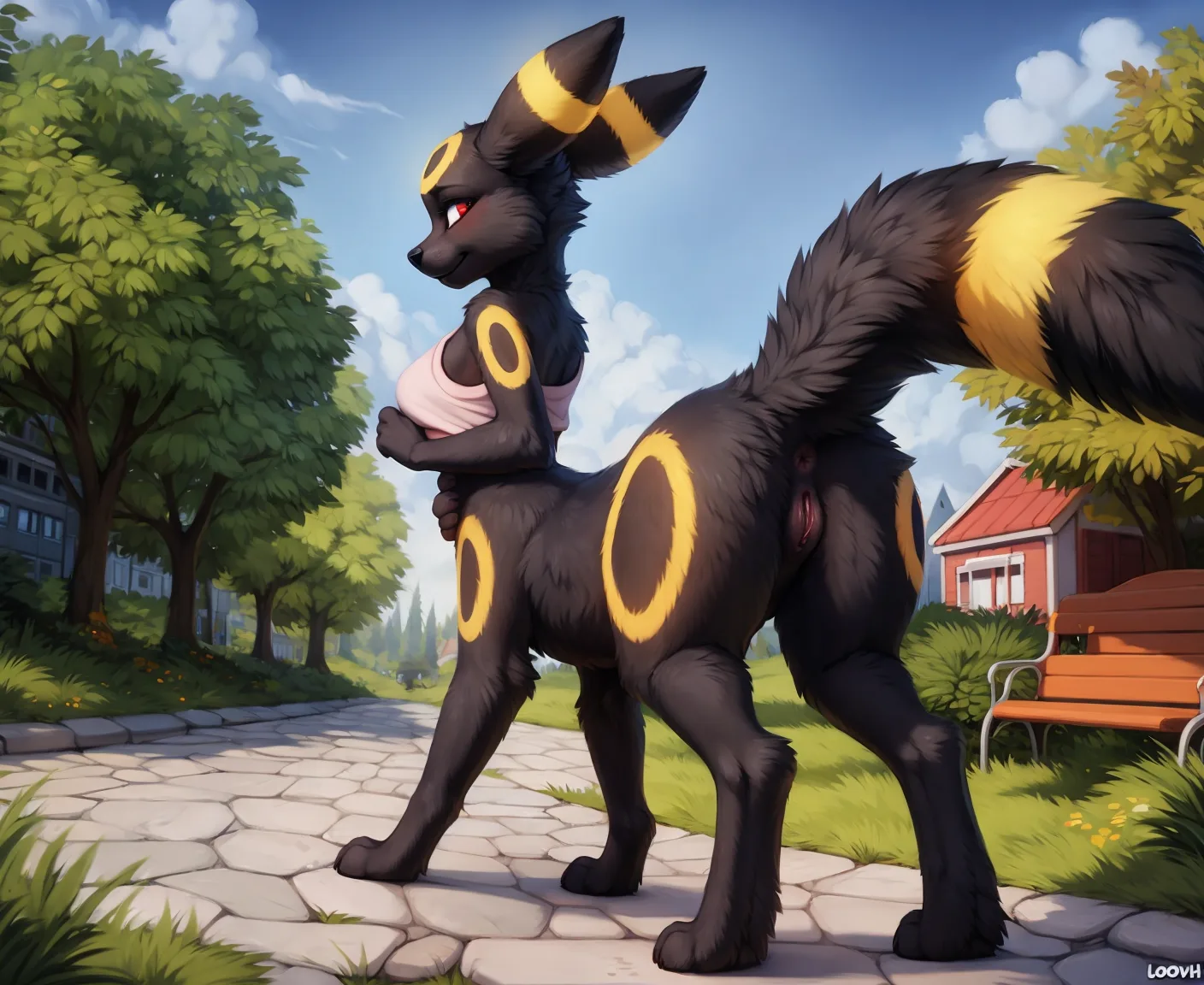 Umbreon Taur Presenting Pussy And Anus Outdoors | Yiff Party