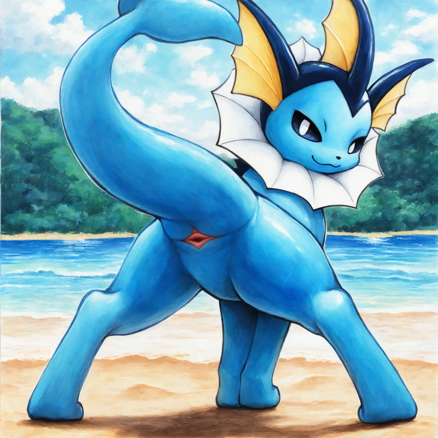 Vaporeon Presenting Cloaca And Fish Tail On Beach | Yiff Party