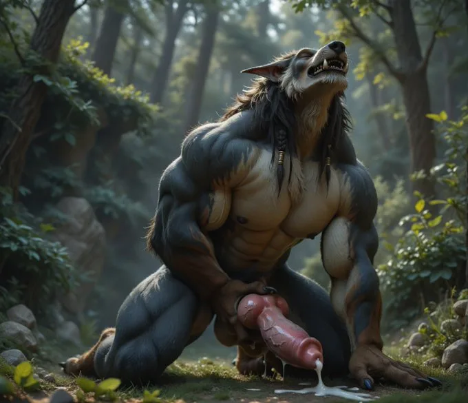 Werewolf Masturbation Glistening Veiny Penis Huge Knot Cum Drip Orgasm | Yiff Party
