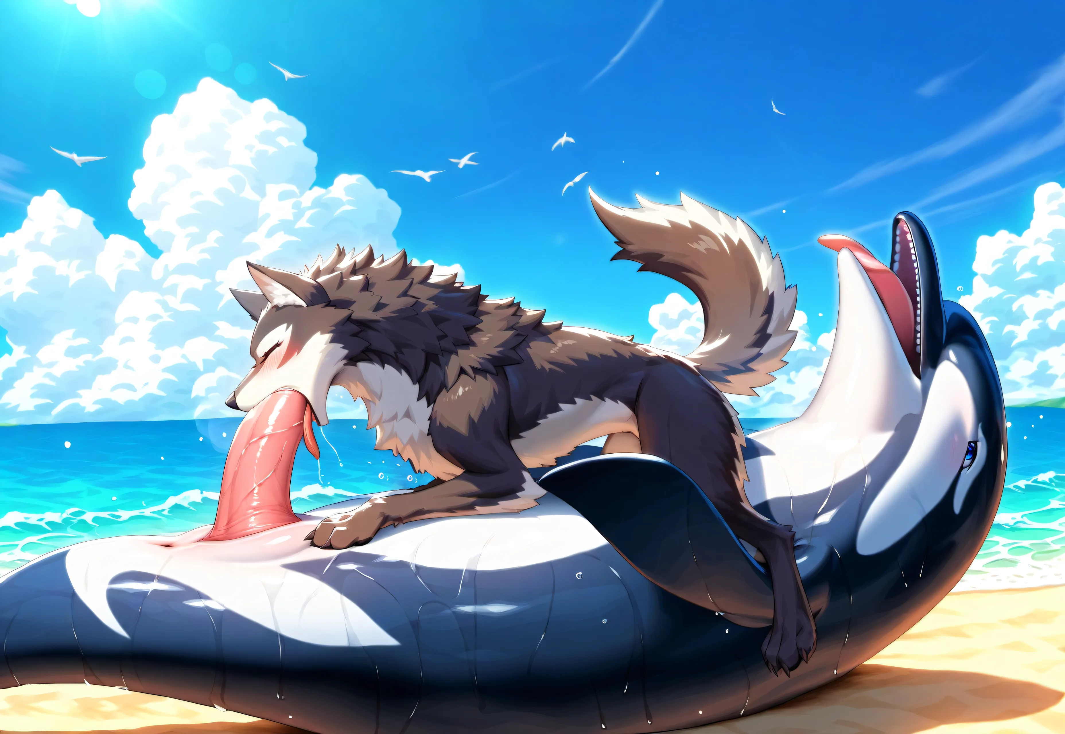 Wet Canine Beach 69 With Glistening Genital Slits | Yiff Party