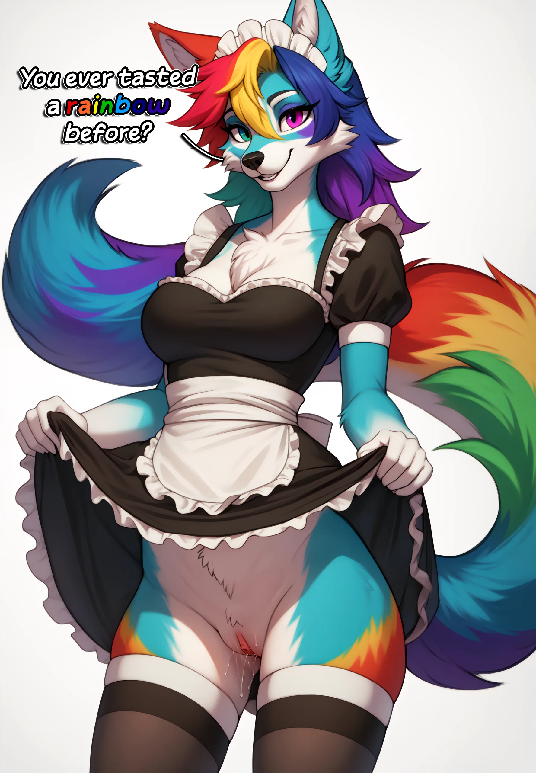 Wet Maid Canid Wolf Lifts Skirt To Show Rainbow Pussy | Yiff Party