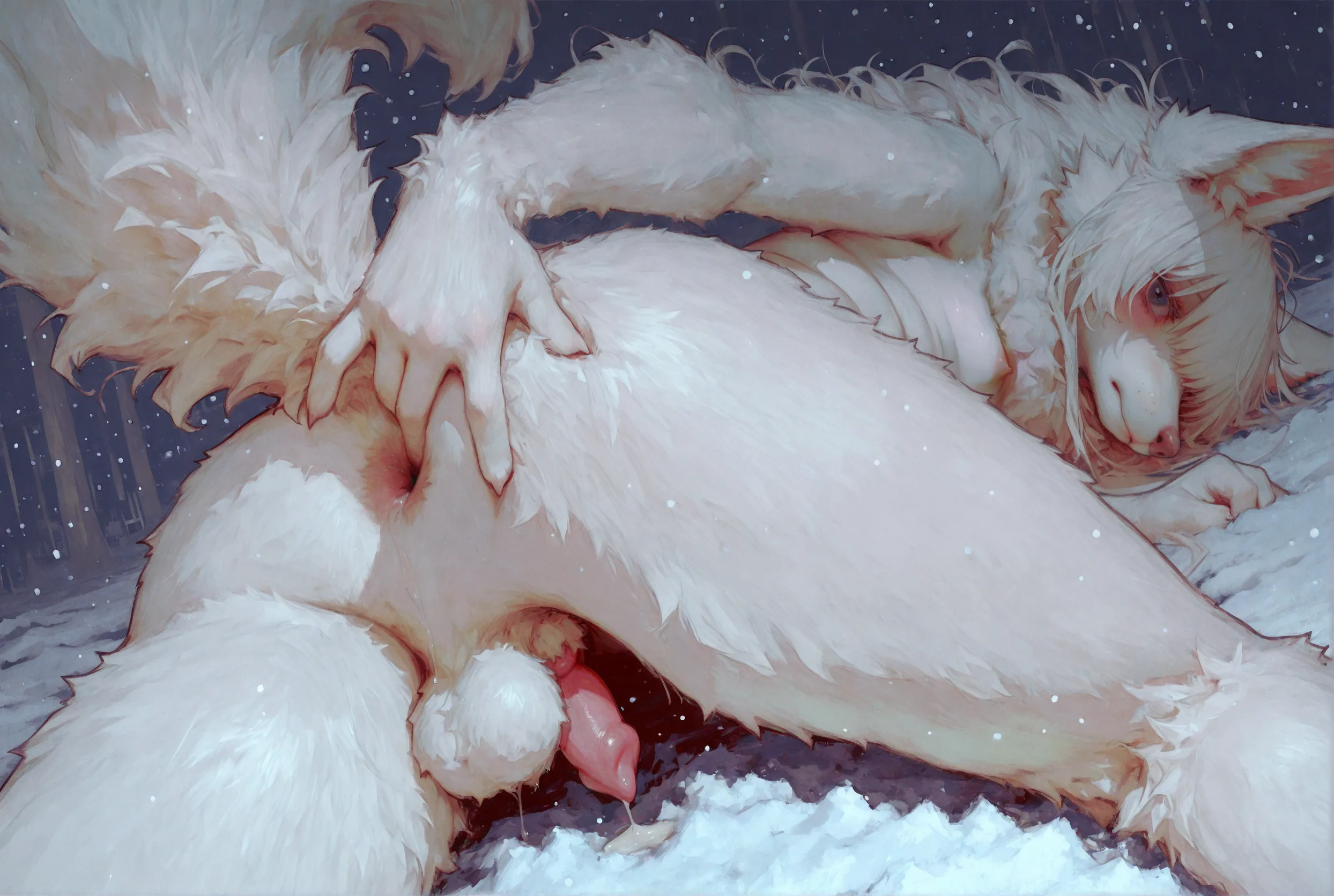 White Arctic Fox Presenting Hindquarters, Anal Fingering, Spreading, F | Yiff Party