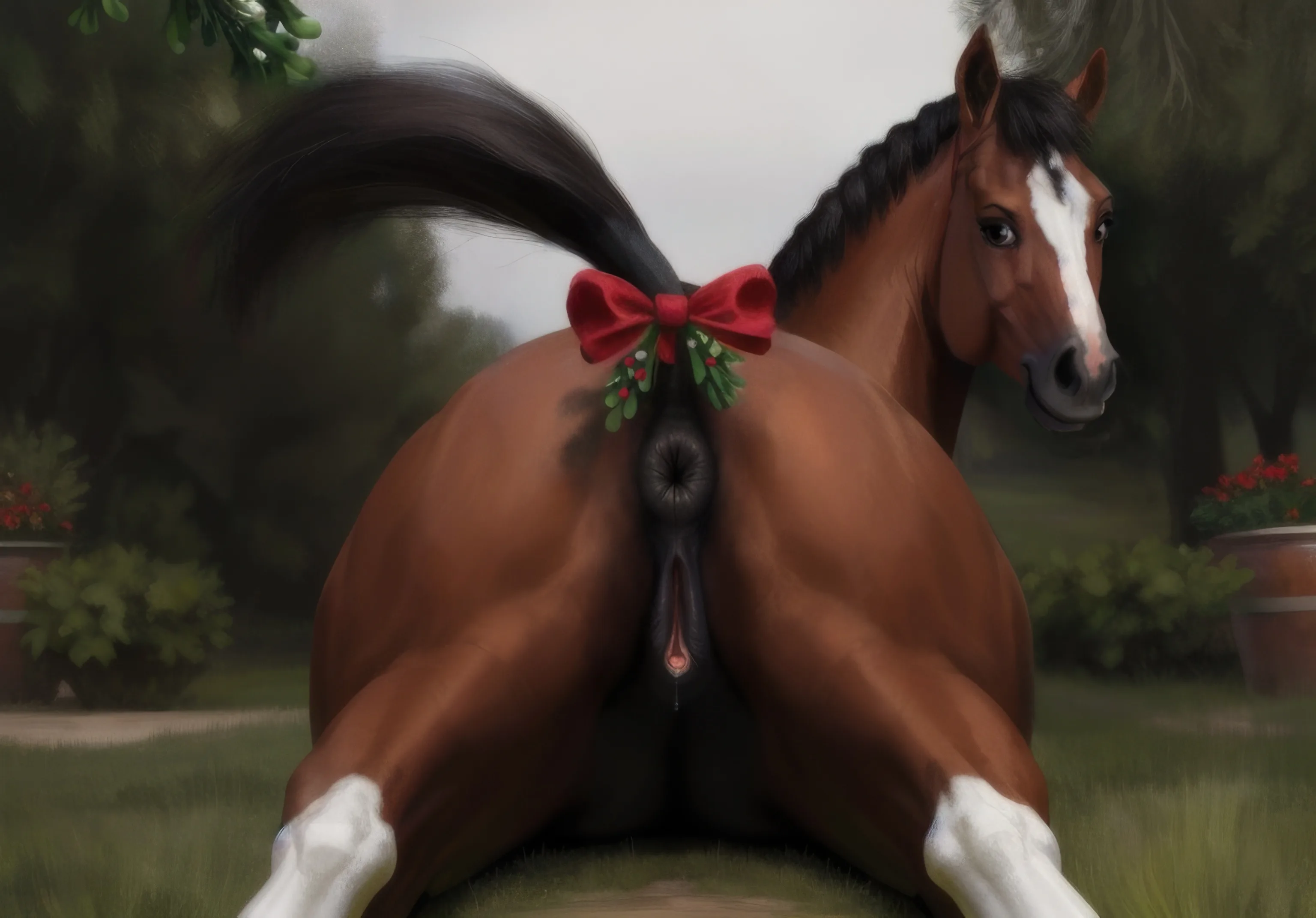 White Mare Presents Pink Pussy And Dark Anus On Grass | Yiff Party