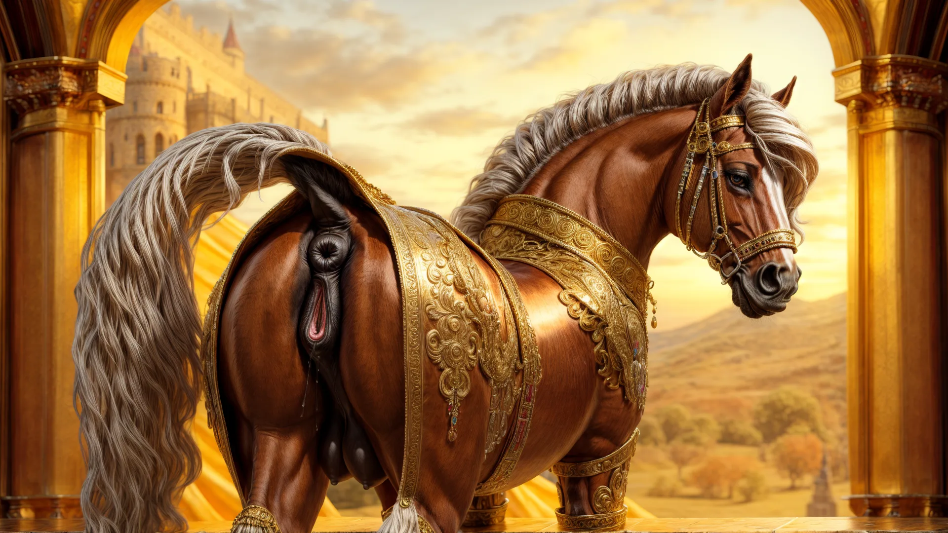 White Mare Shows Off Her Gilded Equine Pussy From Behind | Yiff Party