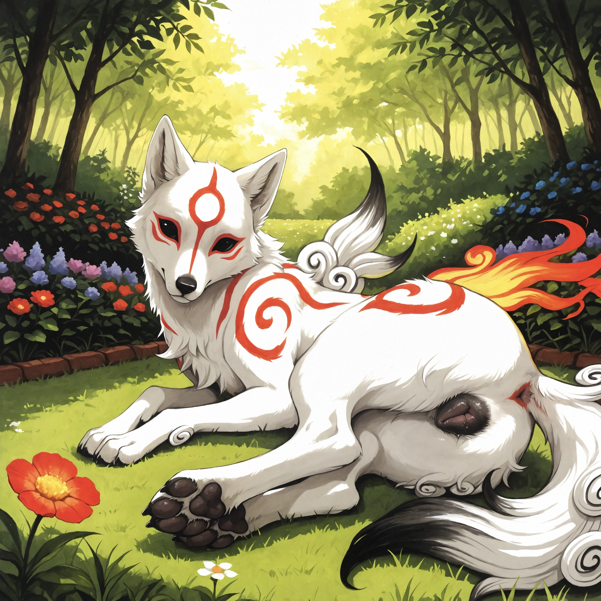 White Wolf Presenting Pussy And Tail Anus In A Flower Garden, Smiling | Yiff Party