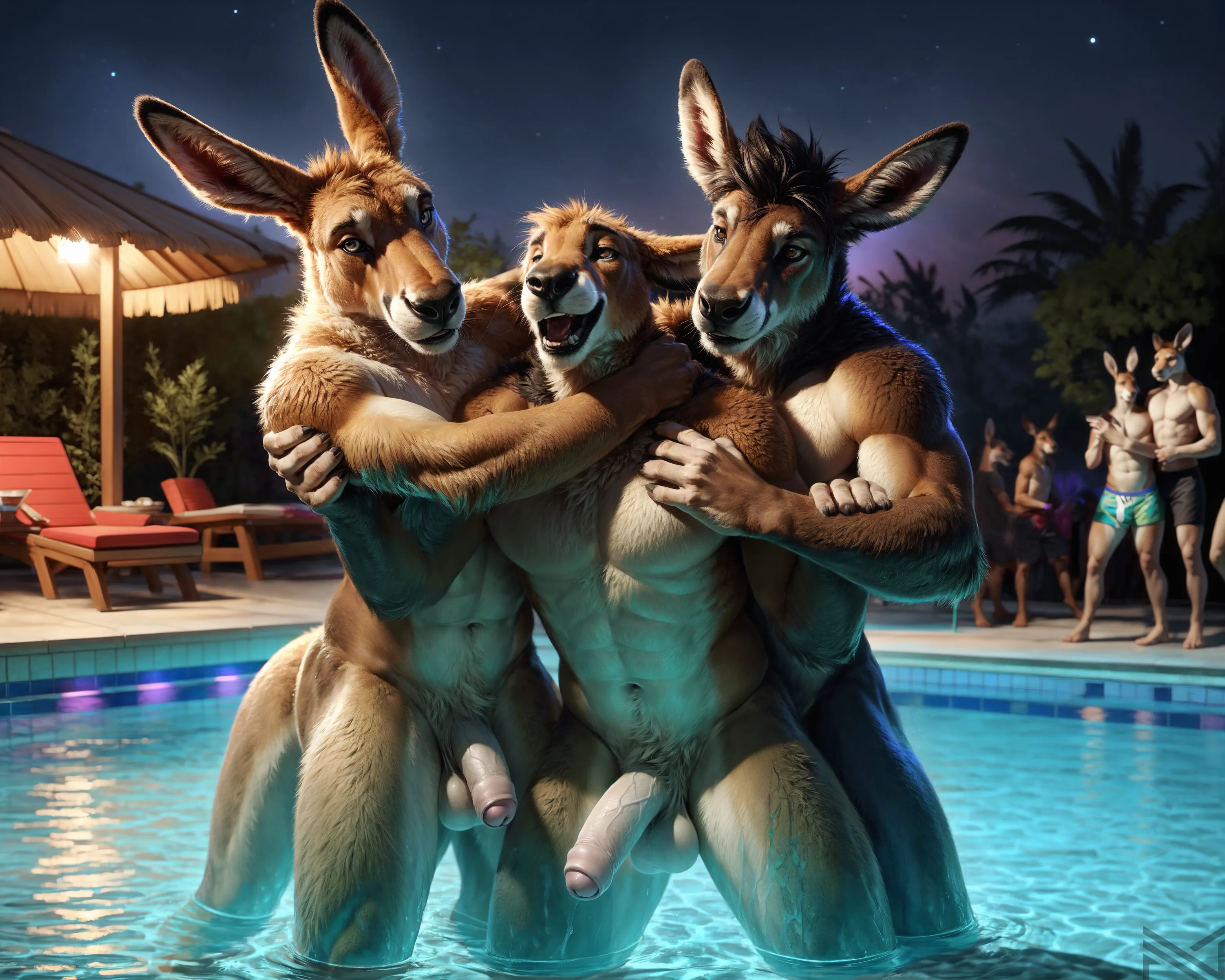 WhiteFurredKangarooTrioNudePoolHug | Yiff Party