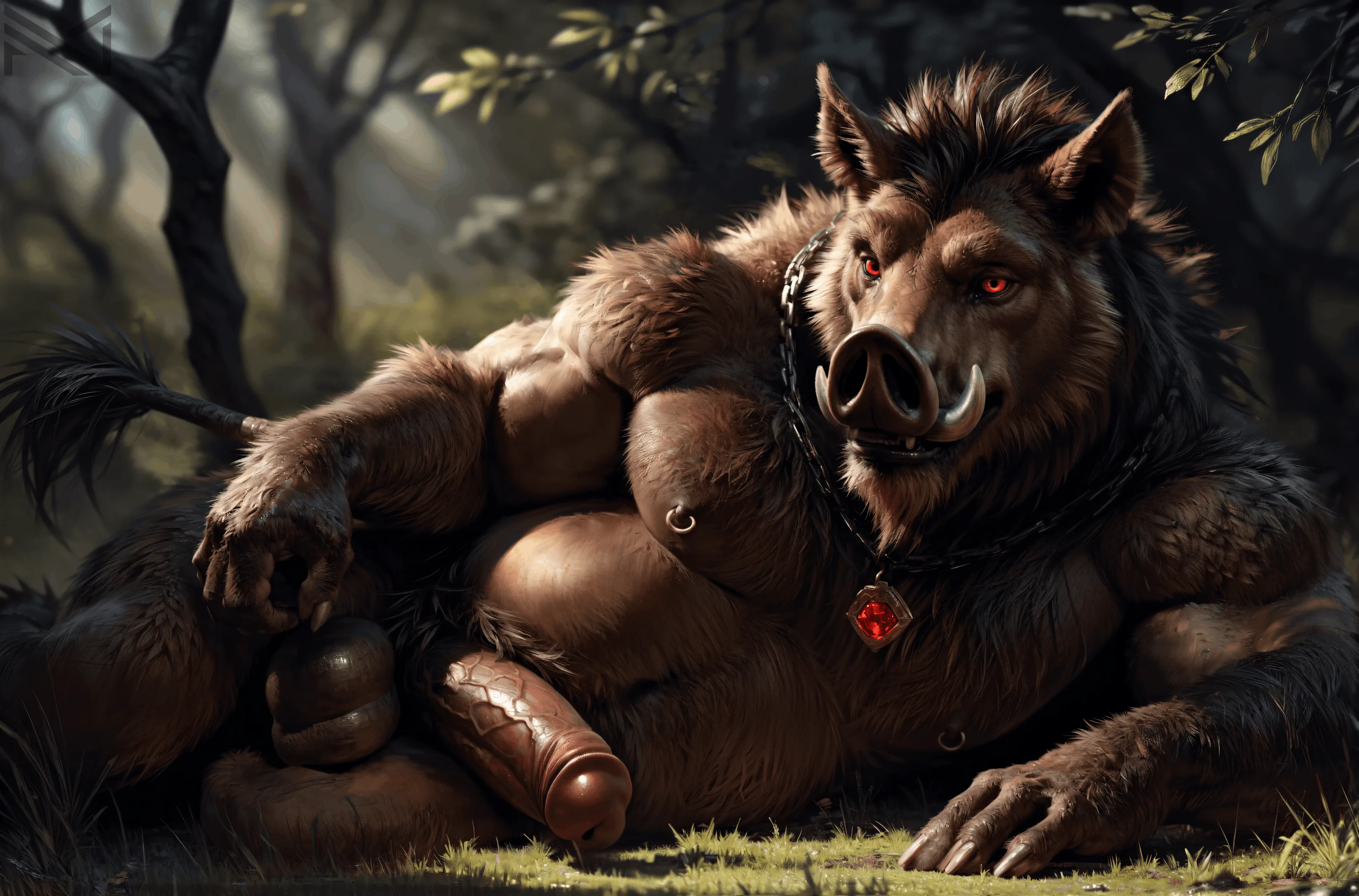 Wild Boar Stud Seducing With Glistening Veiny Erection | Yiff Party