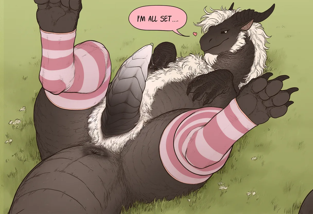 Wingless Black Dragon With Ridged Pink Penis And Striped Stockings Spr | Yiff Party