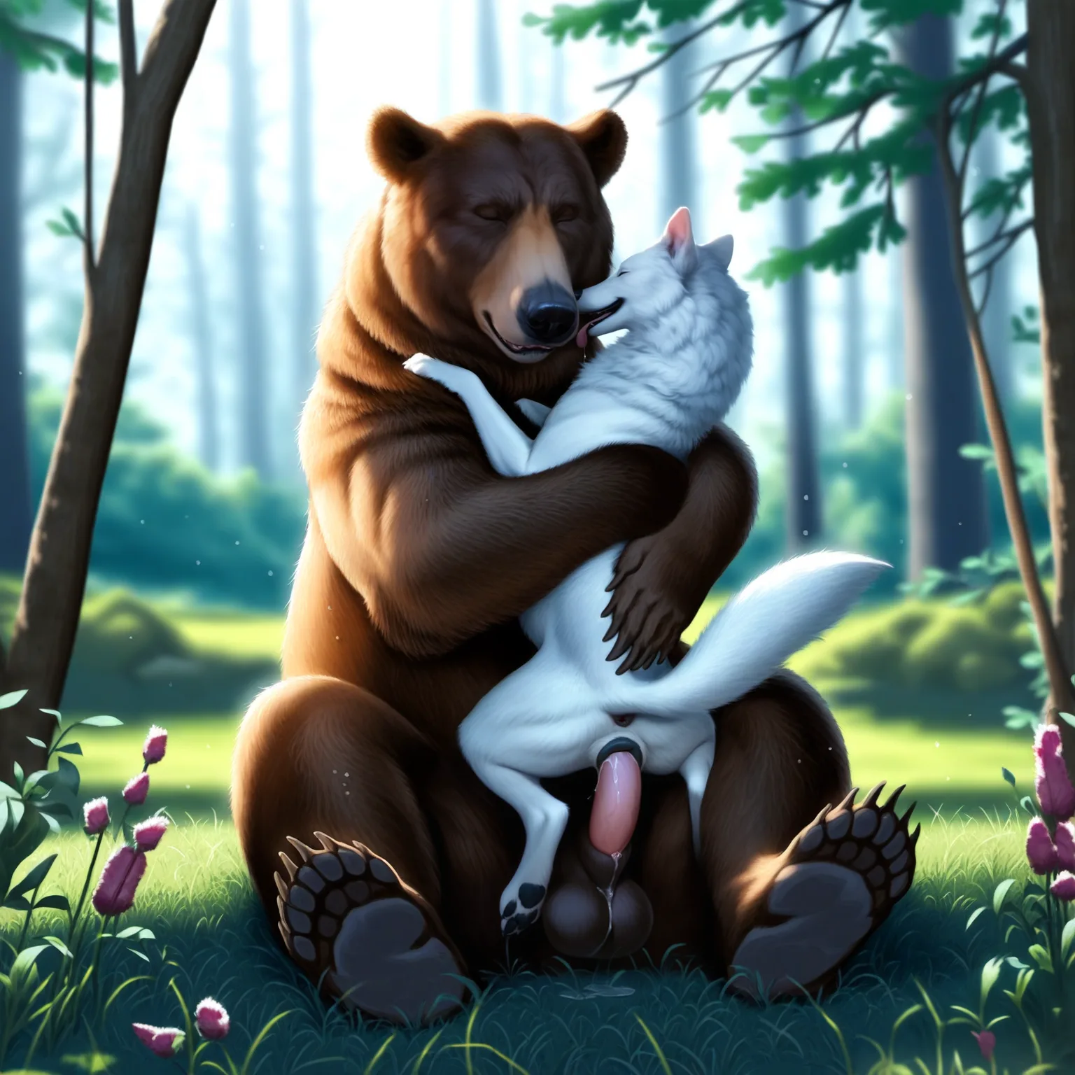 Wolf And Bear Embrace In Primal Forest Passion | Yiff Party
