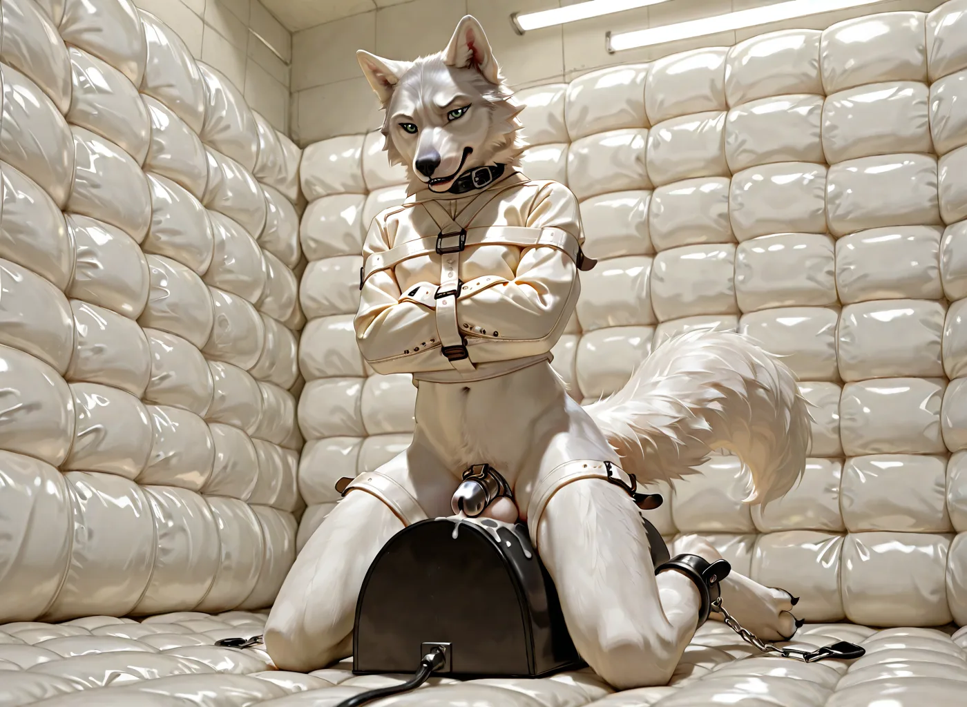 Wolf Anthro Bound In Straitjacket Dripping Precum On Balls While Ridin | Yiff Party