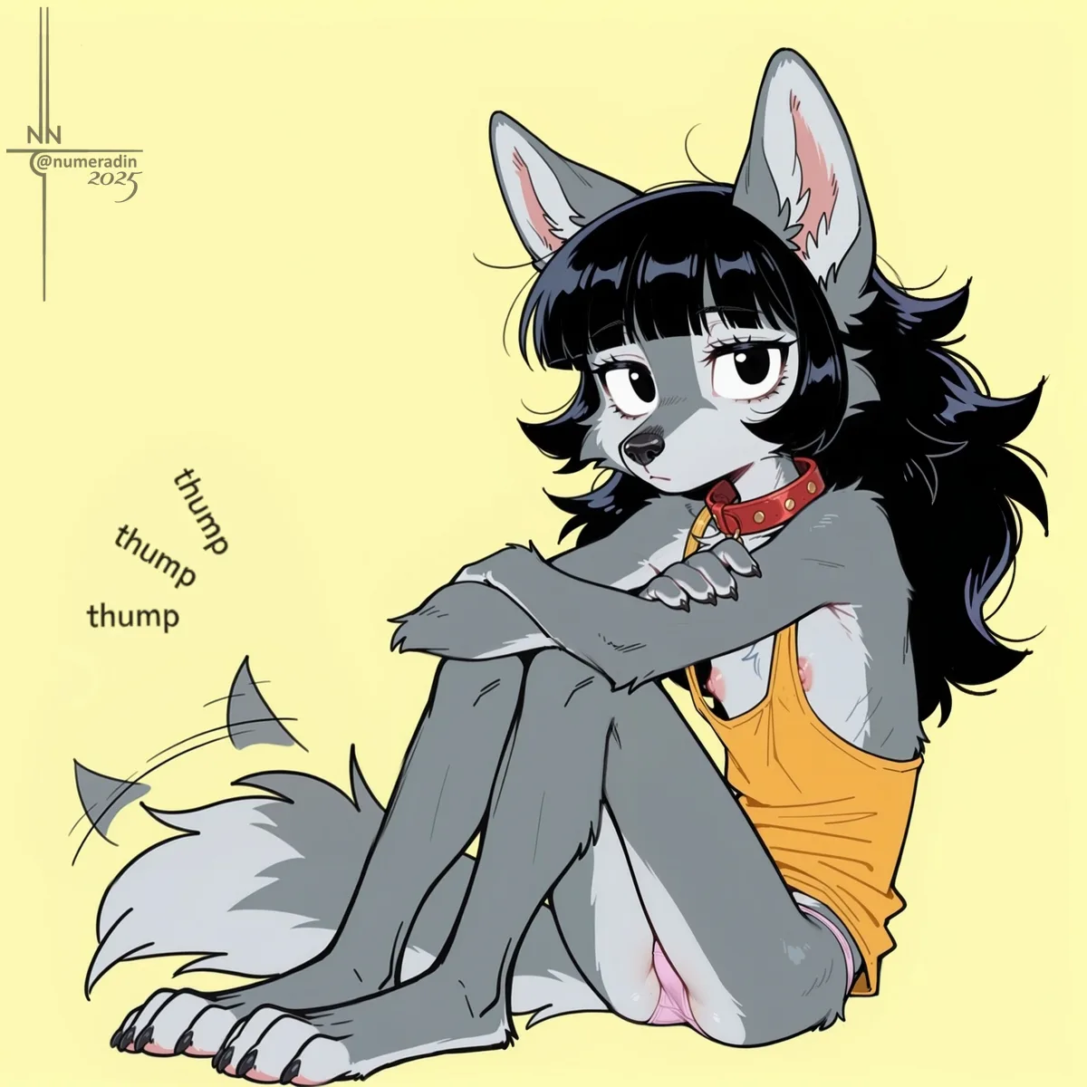 Wolf Anthro Female Solo Partially Clothed Tank Top No Bra Nipple Slip | Yiff Party
