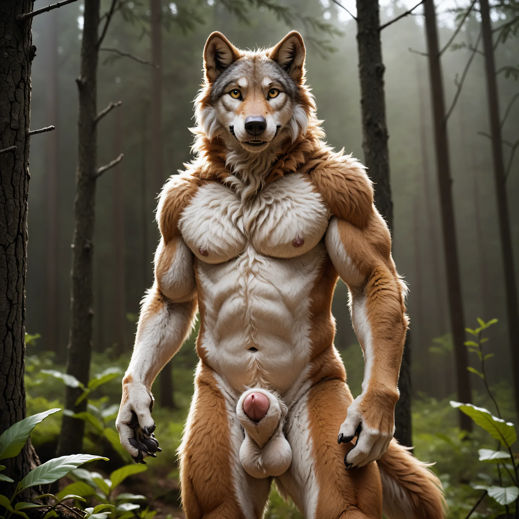 Wolf Anthro Nude Big Balls Sheath Penis Erection Forest Trees | Yiff Party