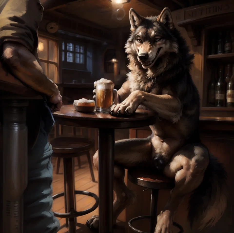 WOLF FEMALE IN HEAT FLIRTING WITH MALE CANINE AT BAR | Yiff Party