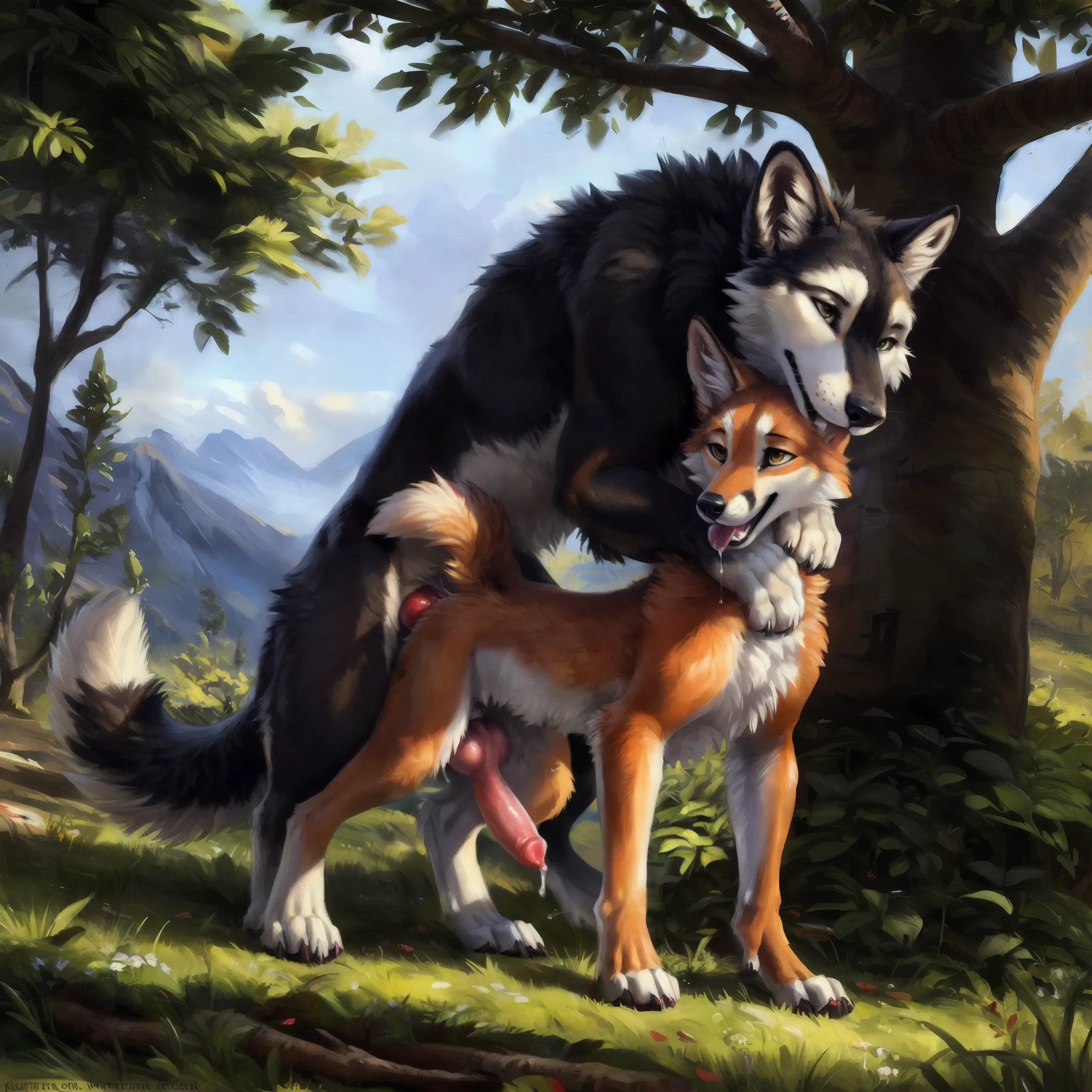 Wolf Fox Feral Knotting In Forest | Yiff Party